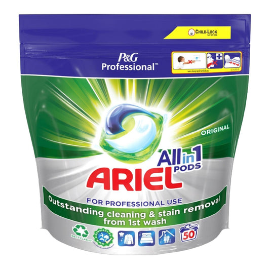 Ariel All In 1 Pods Laundry Clothes Fabric Stain Remover Original Cold Wash 50W Get outstanding laundry results every time with Ariel All in 1 Pods. Powered with Cool Clean Technology, these innovative pods provide brilliant stain removal even in cold washes, helping you...