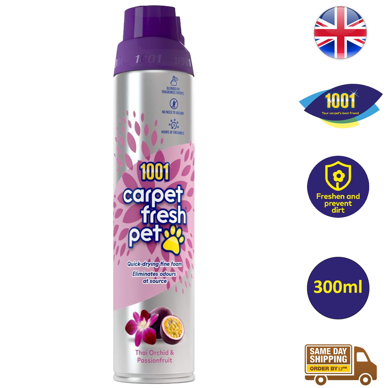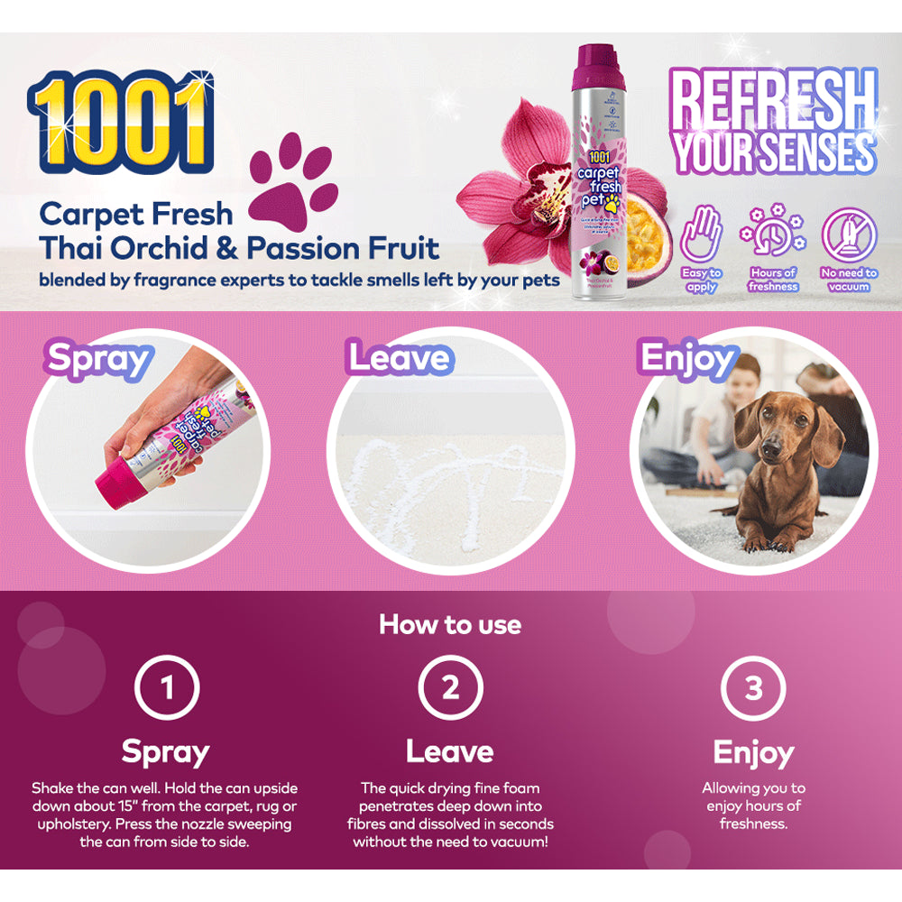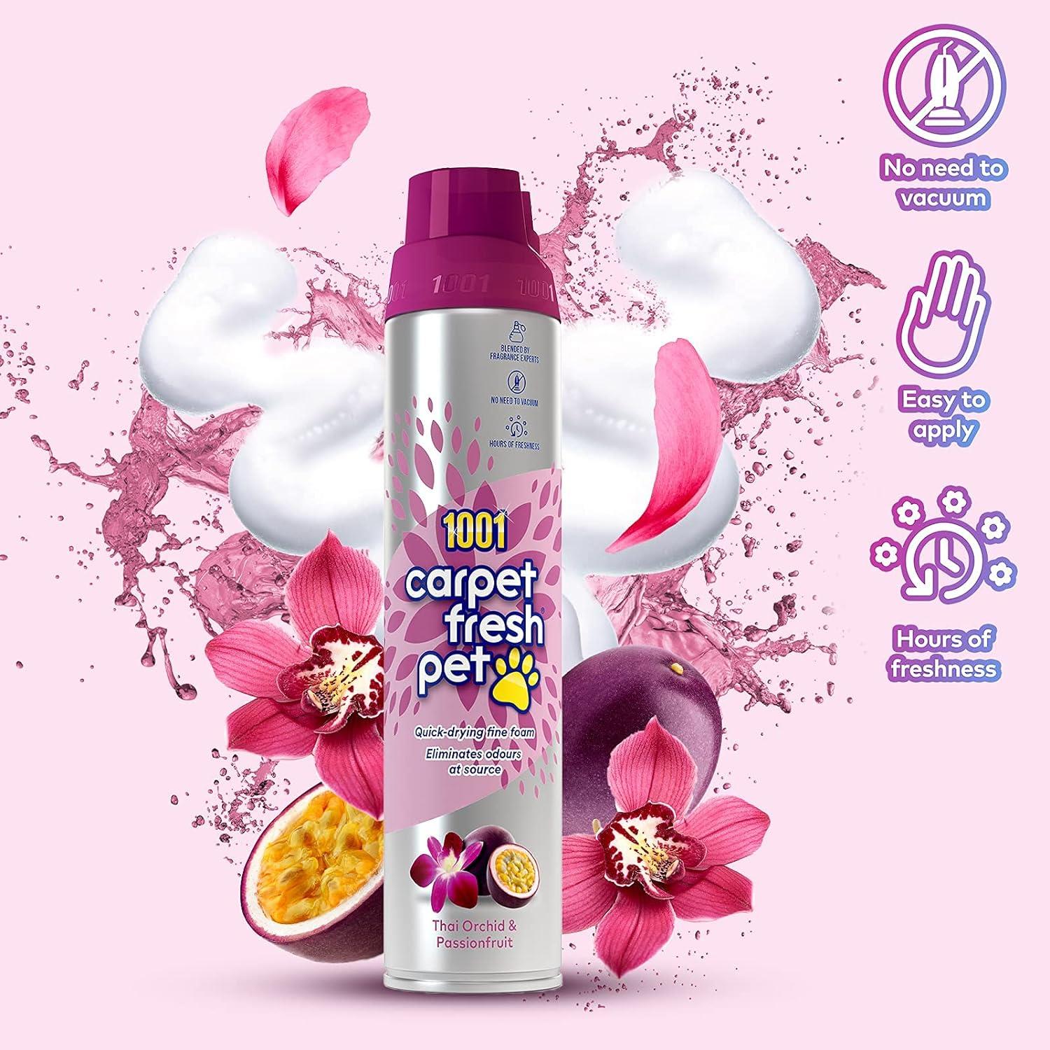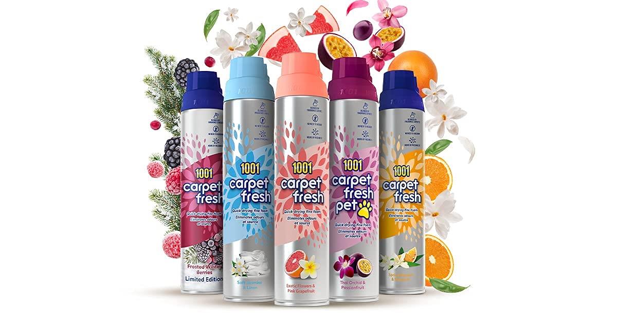 1001 Carpet Fresh, the ultimate solution to keep your carpets, rugs, and upholstery smelling divine. This innovative carpet freshener is expertly crafted to eliminate all types of hidden smells without the hassle of vacuuming. Its new carpet freshening scent, blended by fragrance experts, ensures hours of delightful fragrance, making 1001 Carpet Fresh your go-to companion for dealing with lingering odors.