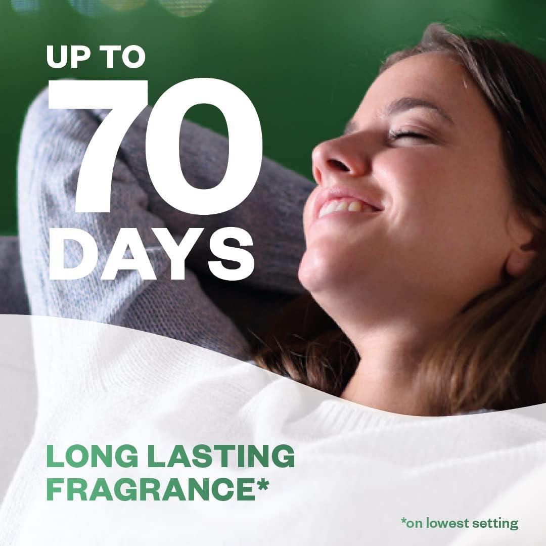 Long-Lasting Freshness: Enjoy up to 70 days of continuous fragrance per refill when set to the minimum intensity setting.