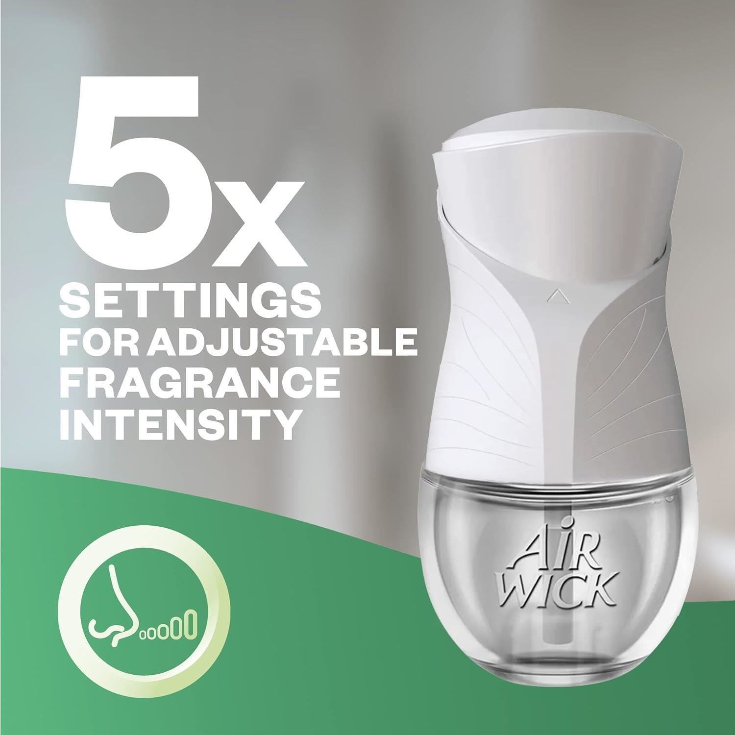 Transform your space into a haven of freshness with the Air Wick Scented Oil Plug-In + Refill. Infused with natural essential oils, this plug-in air freshener delivers long-lasting, consistent fragrance for up to 100 days (on the lowest setting). Featuring Unique Room Fill Technology, it ensures your home is evenly scented, creating an inviting atmosphere. Customize the intensity to suit your preference and enjoy an energy-efficient design that consumes 5X less power than a standard lightbulb.