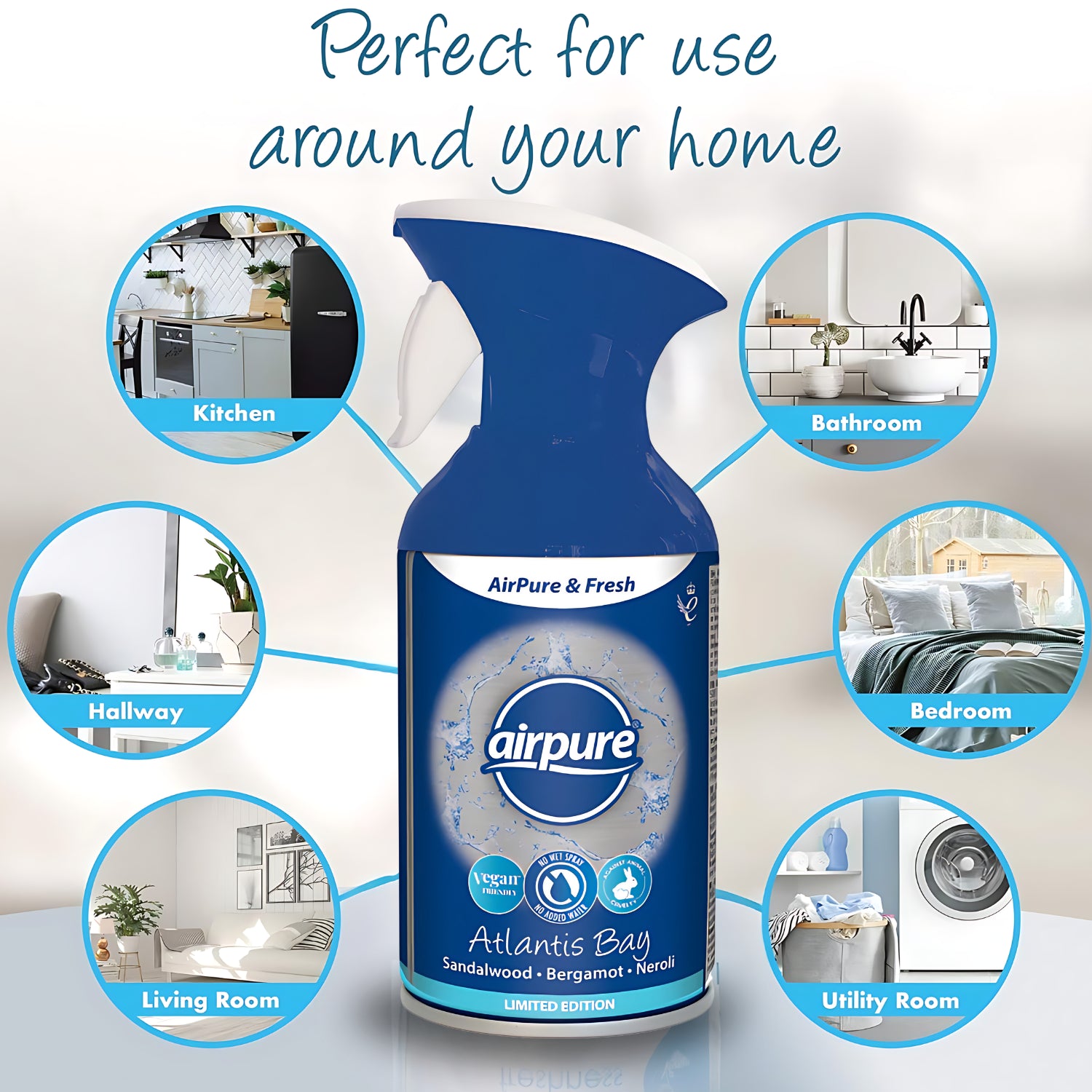 Airpure Fresh Home Room Air Freshener Spray Atlantis Bay Fragrance 250ml