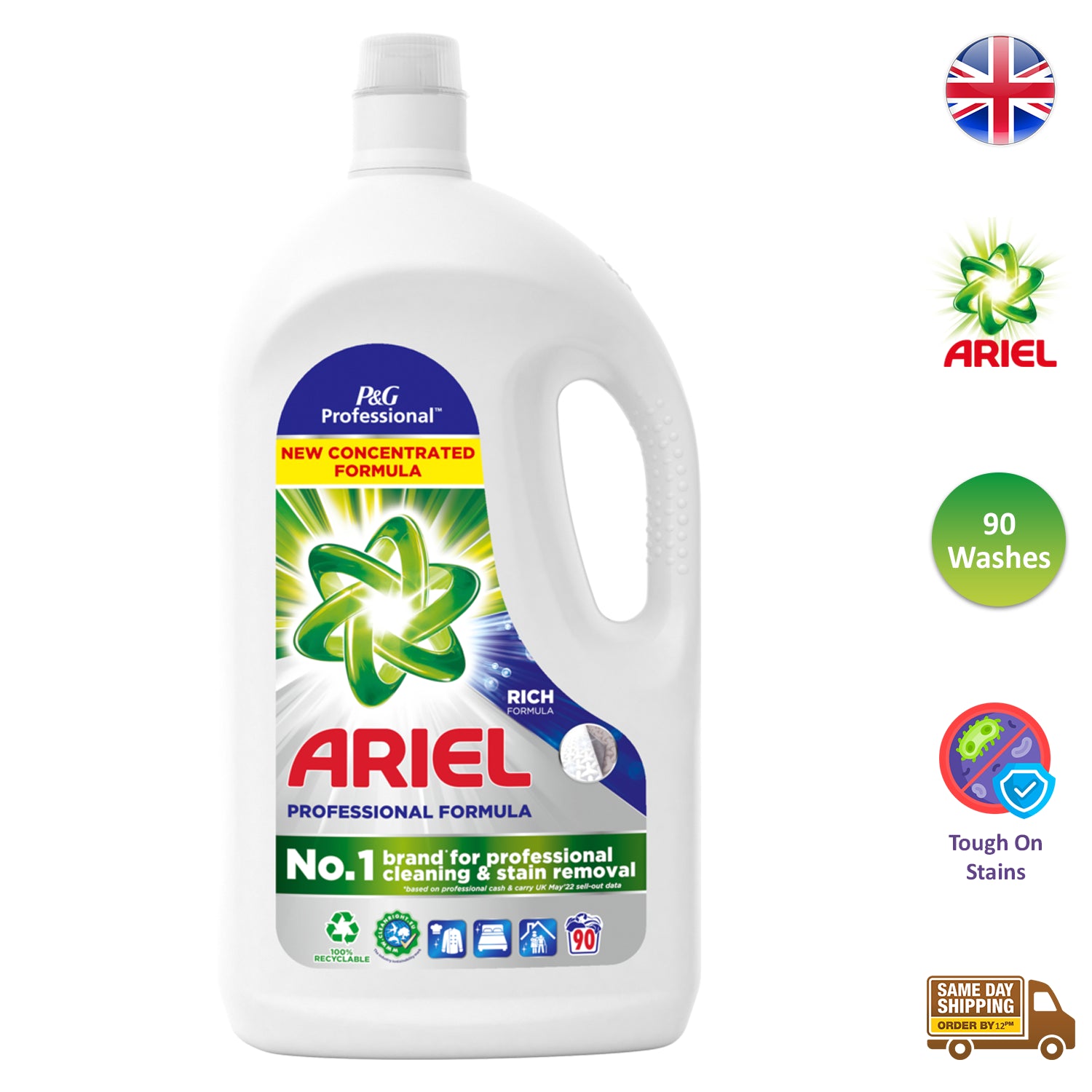 Outstanding Stain Removal: Ariel Professional Washing Liquid excels at removing even the toughest professional stains, providing No.1 cleaning results for your laundry needs.