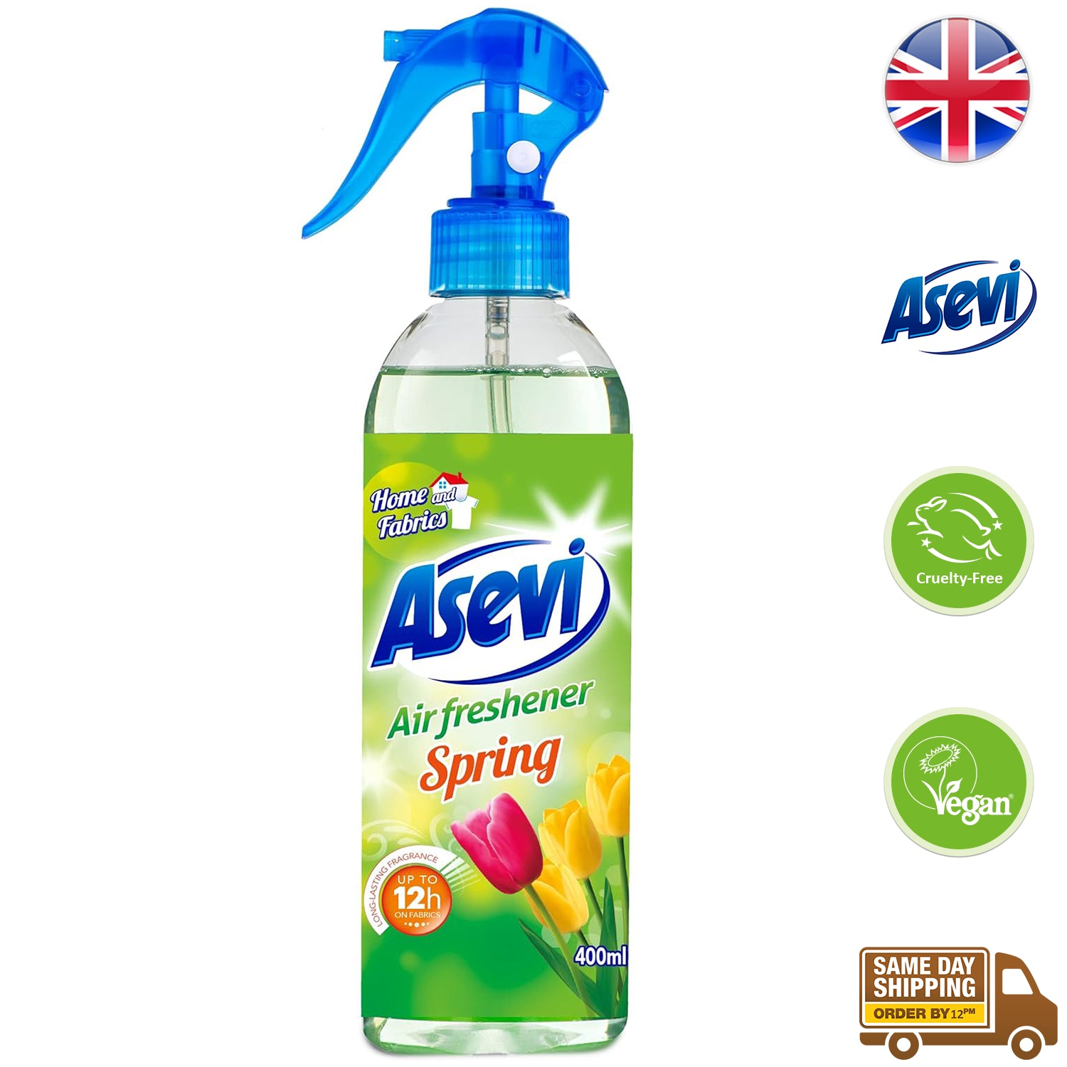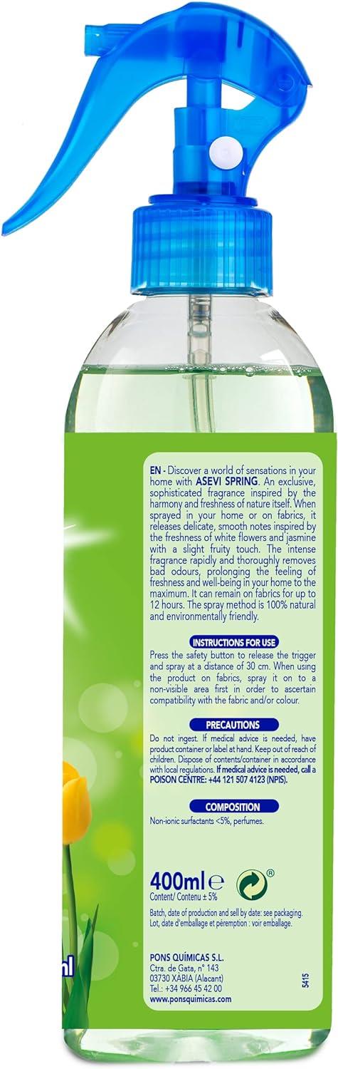 Transform your living space with the refreshing scent of Asevi Home Room Air and Fabric Freshener. This Spring Fragrance Spray, in a convenient 400ml size, is your go-to solution for an instant burst of freshness that lingers. Elevate your home ambiance with the invigorating fragrance of spring.