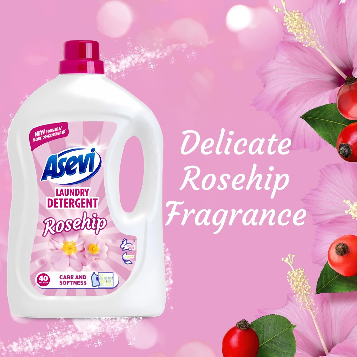 Asevi Laundry Detergent Rosehip 40 Washes Care Softness Fabric Liquid 2.4L