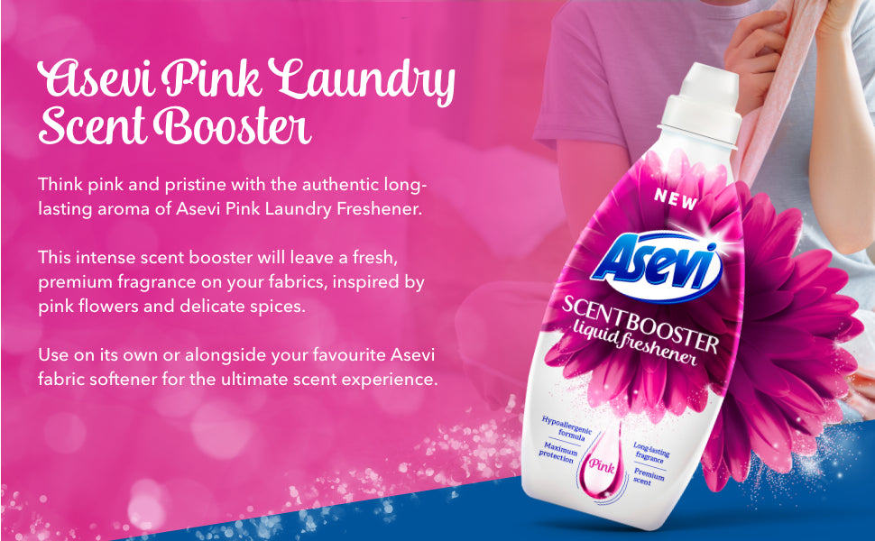 Asevi Spanish Cleaning Products Scent Booster Bundle Set. This exclusive set includes three variants of Asevi Scent Booster Liquid Freshener—Gold, Blue, and Pink—each in a 720ml bottle for up to 36 washes. Designed to infuse your laundry with an intense, long-lasting fragrance, these scent boosters are perfect for those who crave a fresh, vibrant aroma in their clothes. The hypoallergenic and dermatologically tested formula ensures that even those with sensitive skin can enjoy the benefits of a beautifully scented wardrobe. Plus, these scent boosters protect the fibres and colors of your garments, keeping them looking new for longer.