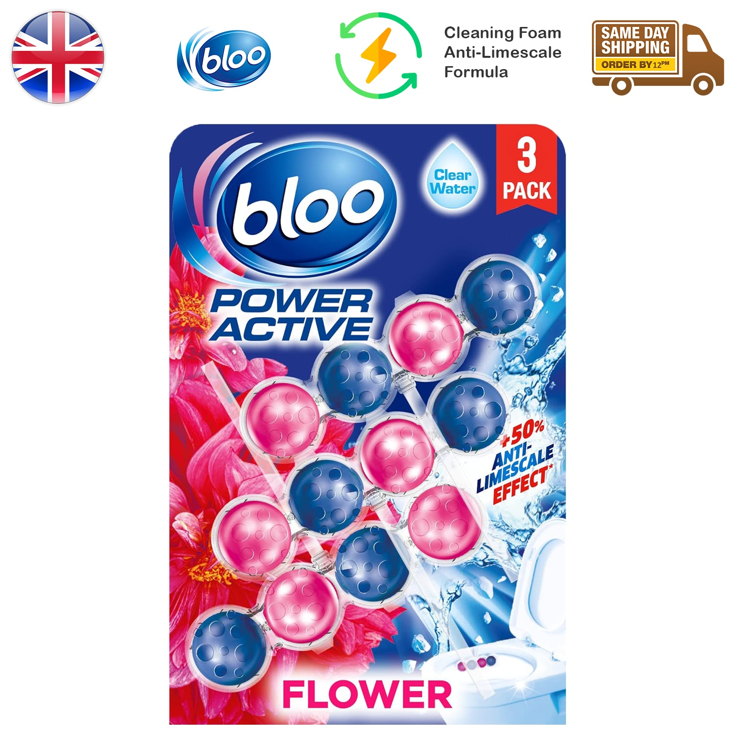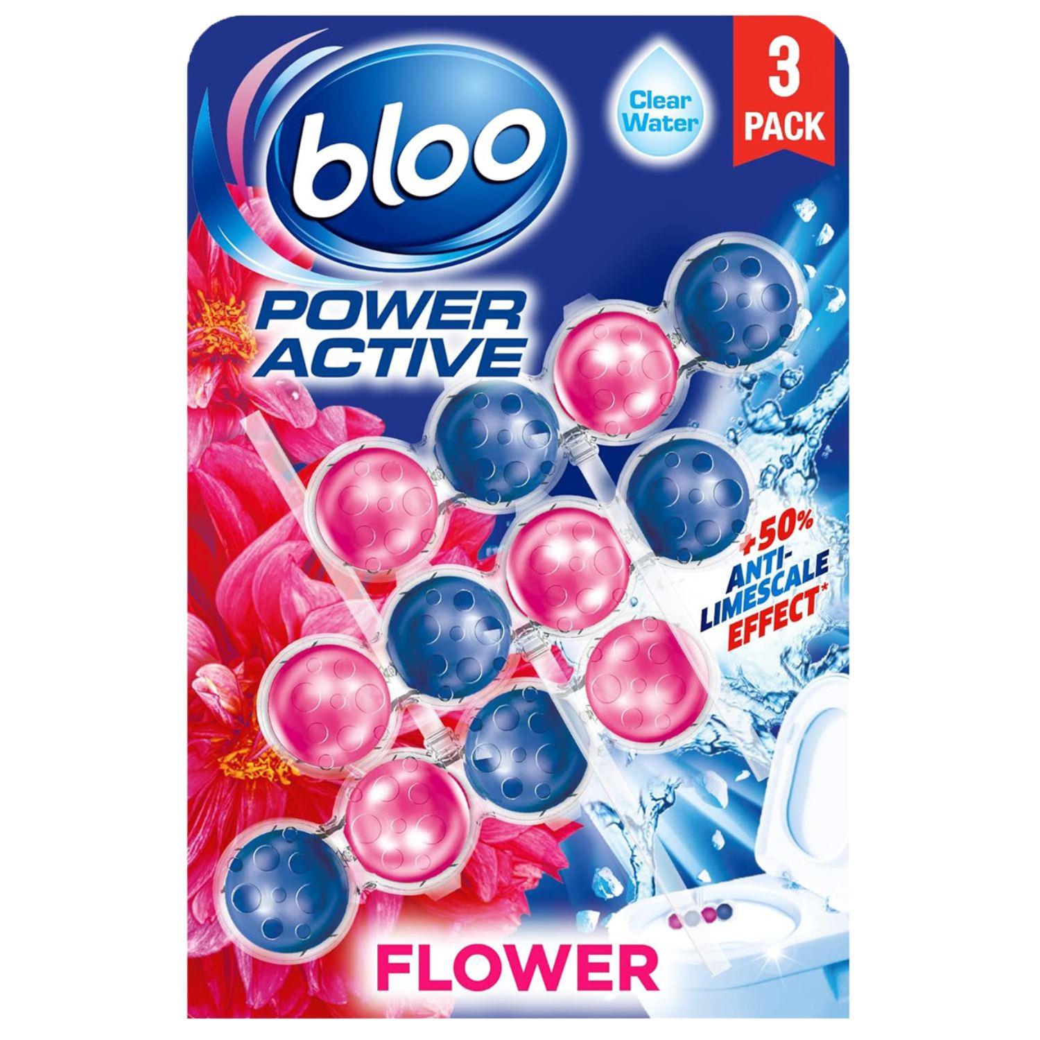 Bloo Power Active Toilet Rim Block Freshener Anti Limescale 3 Pack Flower 50G