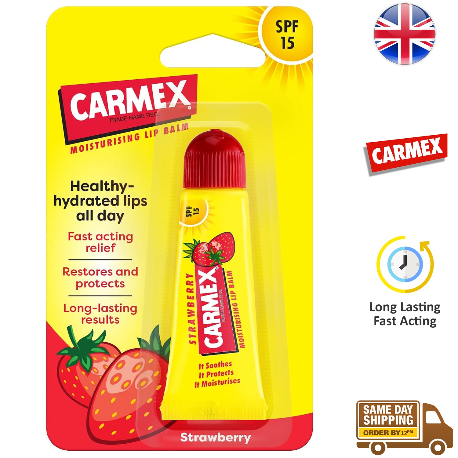 Sun Protection: Particularly important in sunny conditions, apply Carmex before sun exposure to benefit from the added SPF 15 protection.