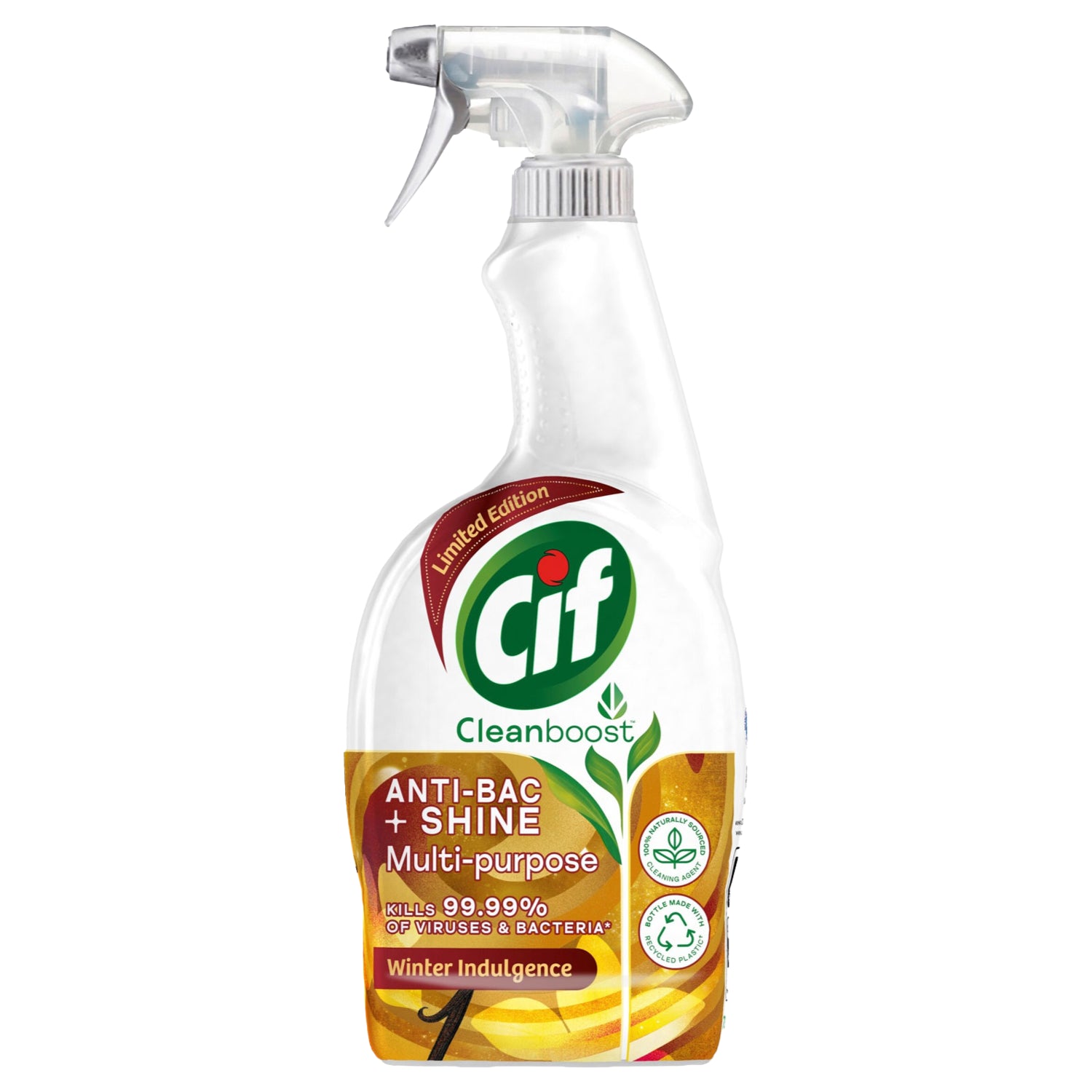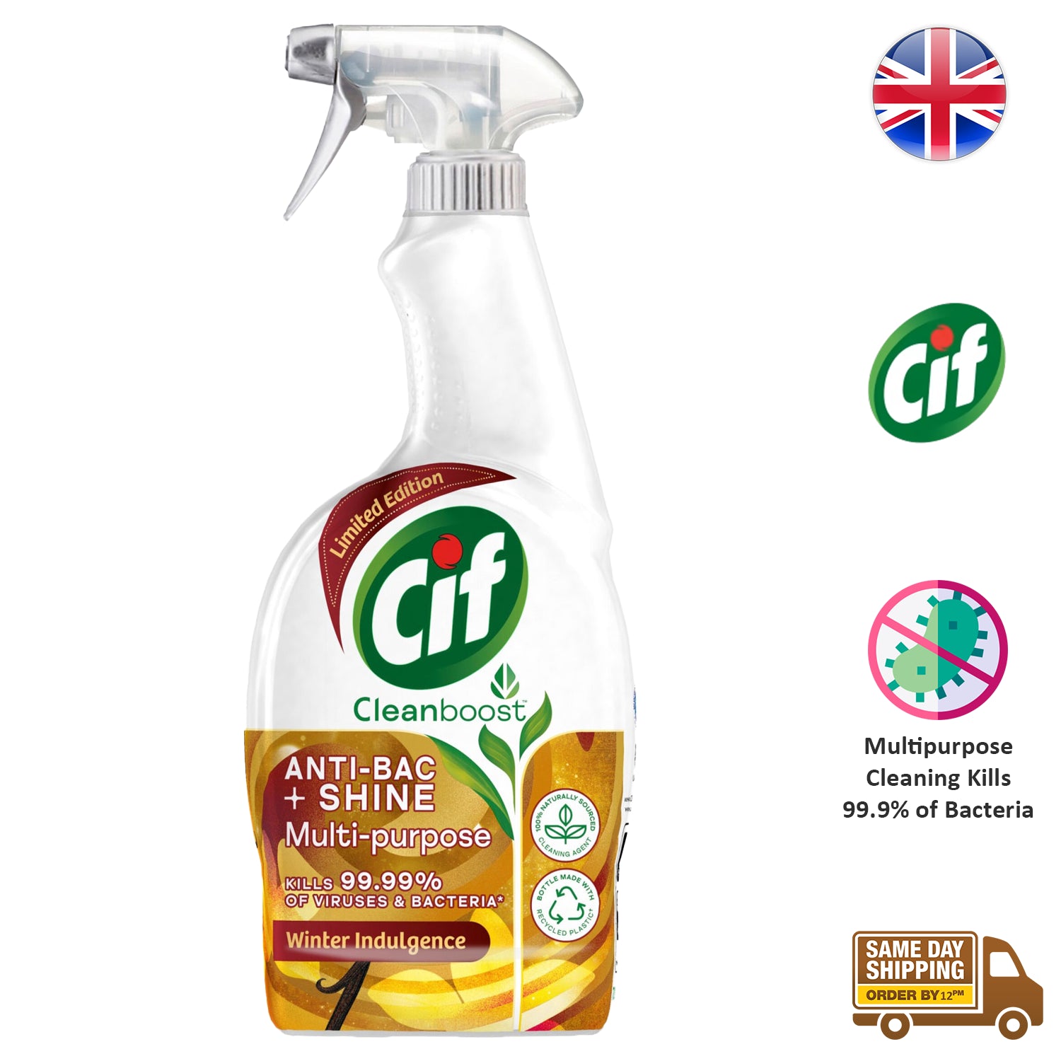 Discover the pinnacle of cleaning with Cif Anti-bac & Shine Multipurpose Cleaner Spray. This limited edition cleaner not only removes visible dirt but also boasts advanced disinfection capabilities, ensuring your home is a haven of hygiene. Enhanced with Cleanboost technology and featuring a 100% naturally sourced cleaning agent, it eliminates 99.99% of viruses and bacteria*. Enjoy the luxury of a 100% bio-degradable fragrance that fills your home with a decadent aroma.