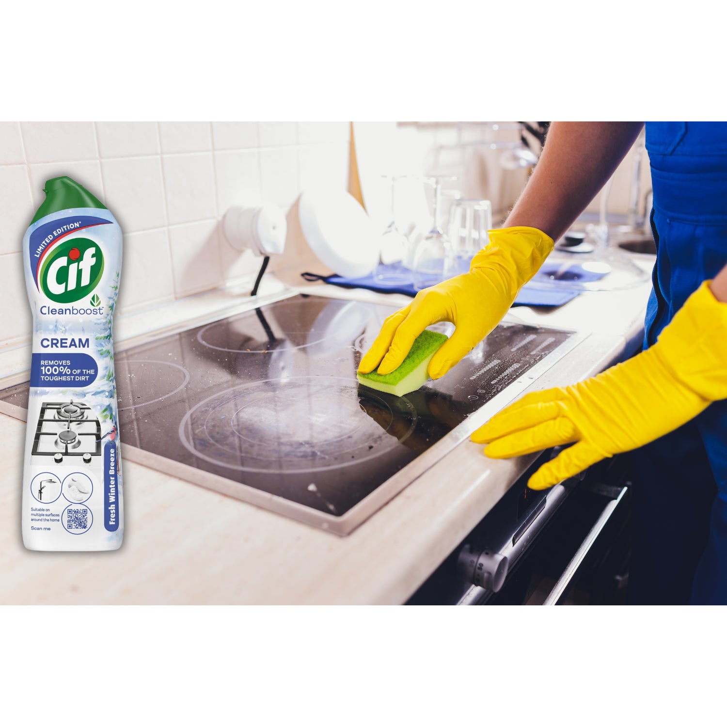 Cif Cream Fresh Winter Breeze Limited Edition is the ultimate cleaner for tackling the toughest dirt around the home. This specially formulated cream cleaner effortlessly removes 100% dirt, grease, and stains from a variety of surfaces, leaving your home sparkling clean. Infused with a Winter Breeze scent, this product brings a refreshing, crisp aroma that fills the room with a clean, invigorating fragrance. Perfect for kitchens, bathrooms, and beyond, Cif Cream offers superior cleaning performance, combined with a fresh, winter-inspired scent for a home that feels as clean as it smells.