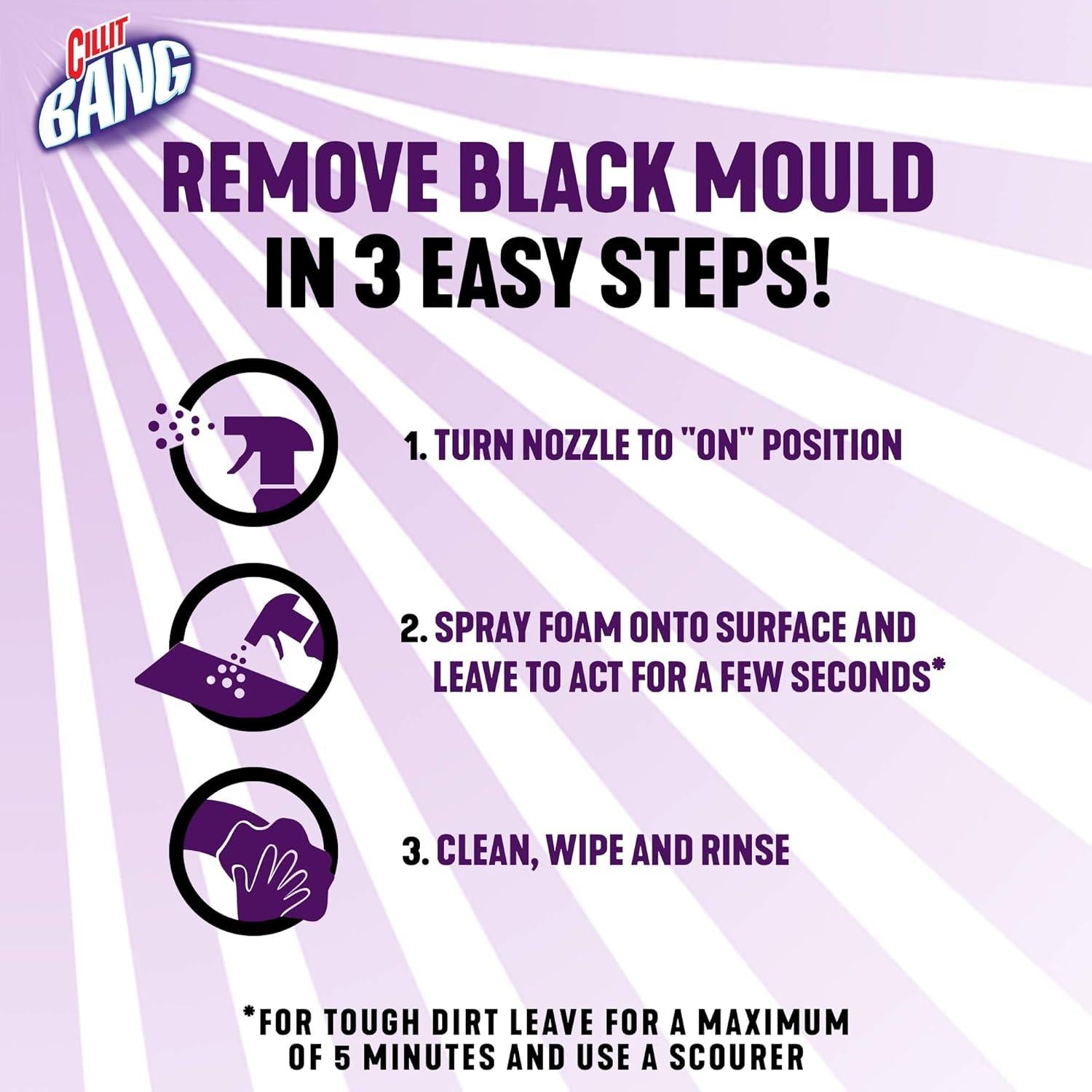 Whether it's in your bathroom, kitchen, or utility areas, Cillit Bang cuts through mould stains effortlessly, leaving surfaces sparkling clean and hygienic.