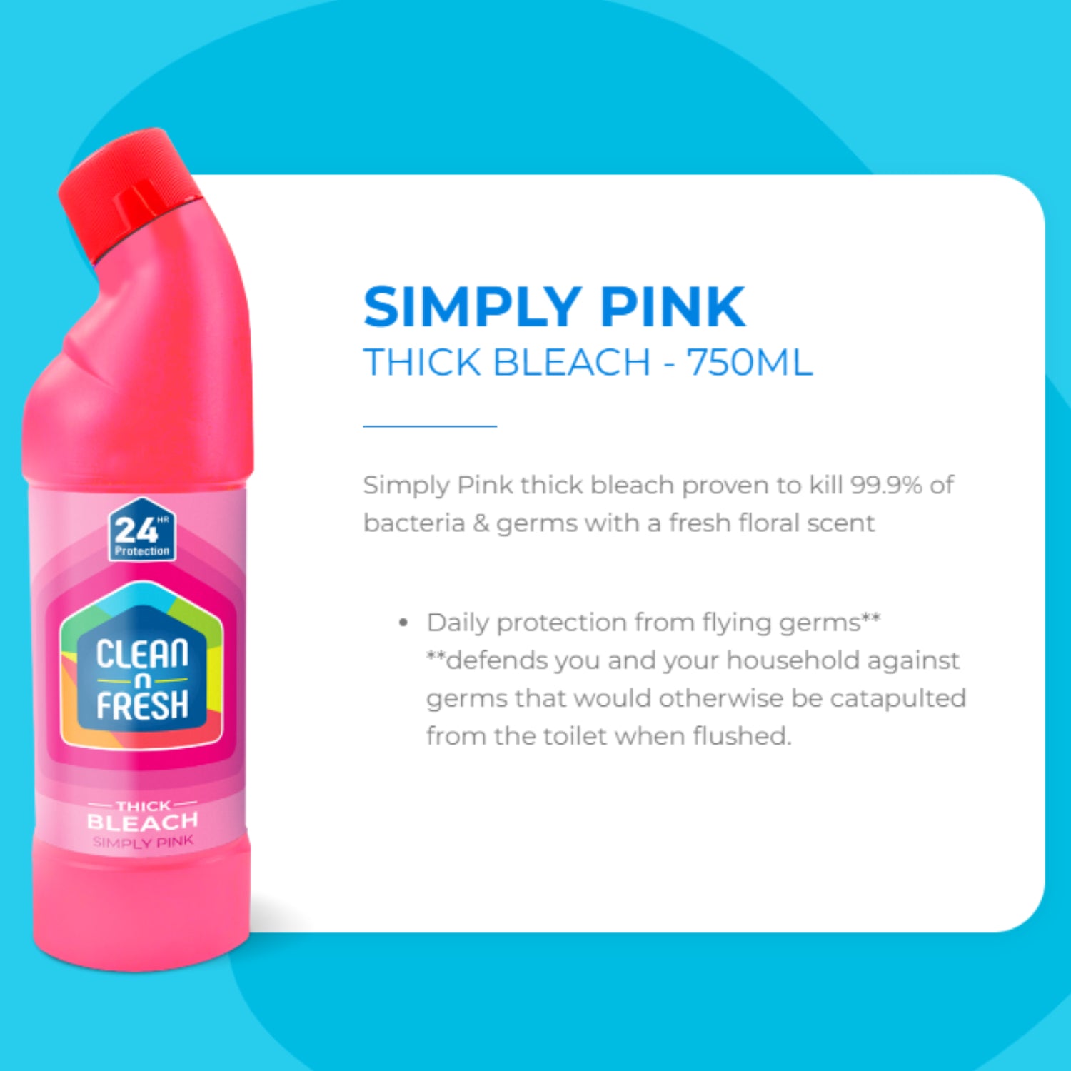 Clean N Fresh Thick Bleach Simply Pink is a powerful multi-purpose cleaner designed to tackle tough stains and eliminate harmful bacteria and germs. With its thick formula, this bleach clings to surfaces for maximum cleaning power, ensuring a thorough clean every time. It kills 99.9% of bacteria and germs, providing peace of mind for a hygienic home. The Simply Pink fragrance leaves a pleasant scent, making your cleaning experience more enjoyable. Ideal for use in kitchens, bathrooms, and other high-traffic areas, Clean N Fresh Thick Bleach is your go-to solution for a sparkling clean and germ-free environment.