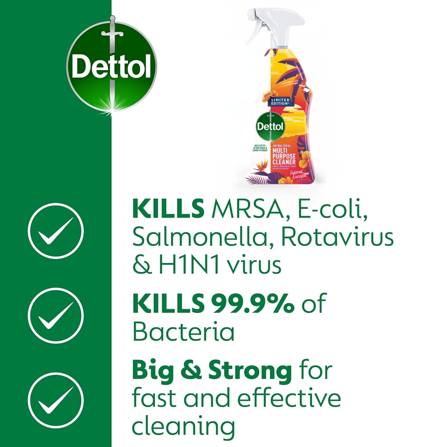 Dettol Antibacterial Multi-Purpose Cleaner Island Escape is a versatile and effective cleaning solution designed to eliminate dirt, grease, and grime while killing 99.9% of bacteria and viruses. Infused with a tropical Island Escape fragrance, this cleaner provides a refreshing and uplifting scent, turning your cleaning routine into a delightful experience. Suitable for various surfaces around the home, it leaves a streak-free shine, ensuring that your home is clean, fresh, and hygienic. The 750ml size provides a generous amount for everyday use, making it an essential addition to your cleaning arsenal.