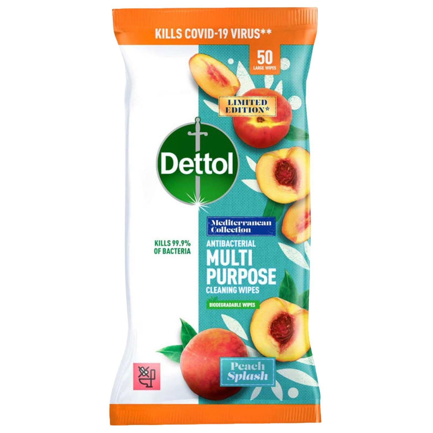 Dettol Peach Splash Scented Multipurpose Surface Cleaning Biodegradable 50 Wipes