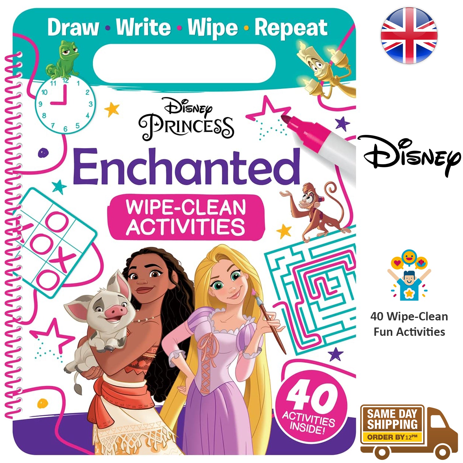 Disney Princess Clean & Wipe Activities For Girls Kids Draw Write Repeat
