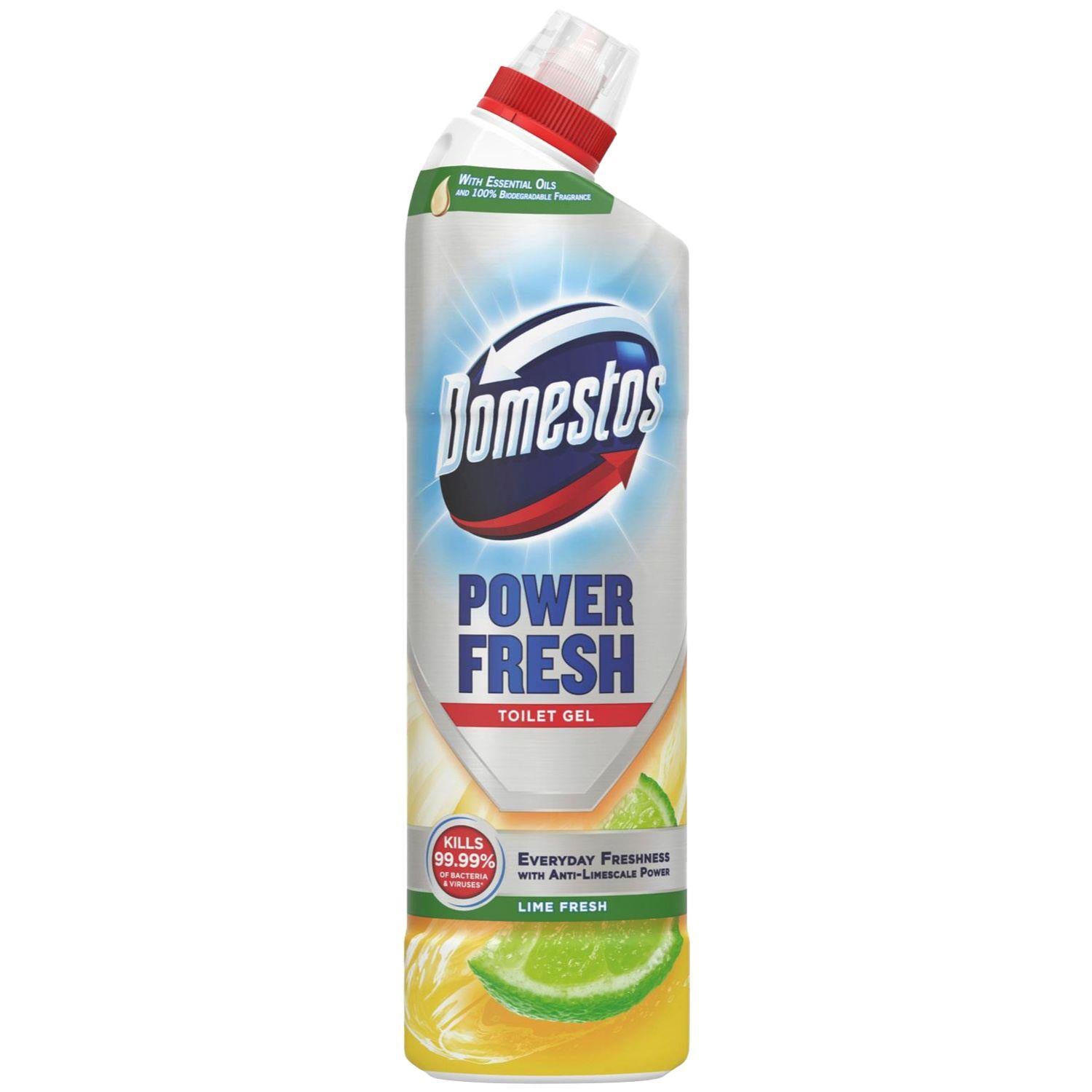 Domestos Power Fresh Toilet Gel is a powerful and effective toilet cleaner designed to eliminate 99.99% of germs. Formulated with essential oils and a 100% bio-degradable fragrance, this toilet gel ensures that your toilet not only stays disinfected but also leaves behind a pleasant and fresh scent without any harsh chemical odors. This advanced toilet cleaner is specifically engineered to clean stains, including those below the waterline, and combat stubborn limescale buildup, leaving your toilet bowl sparkling clean and hygienic.