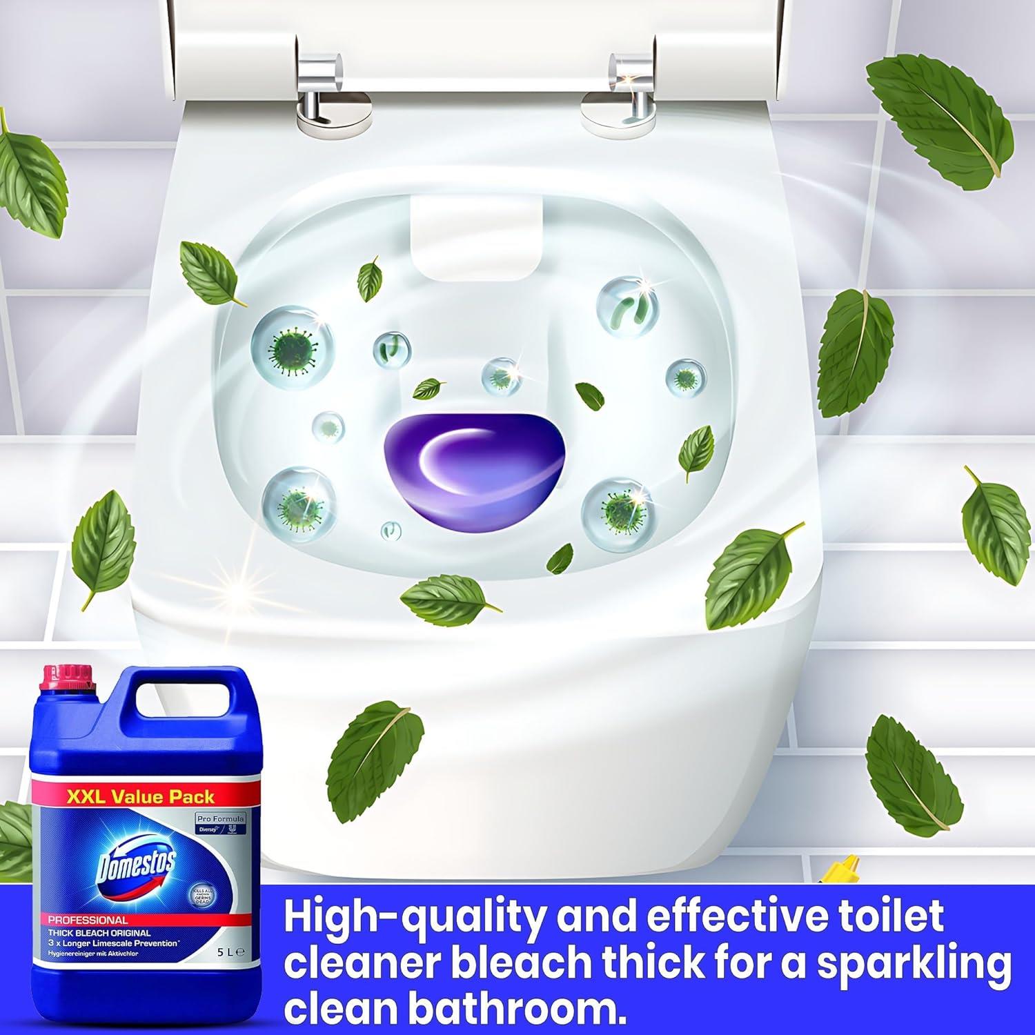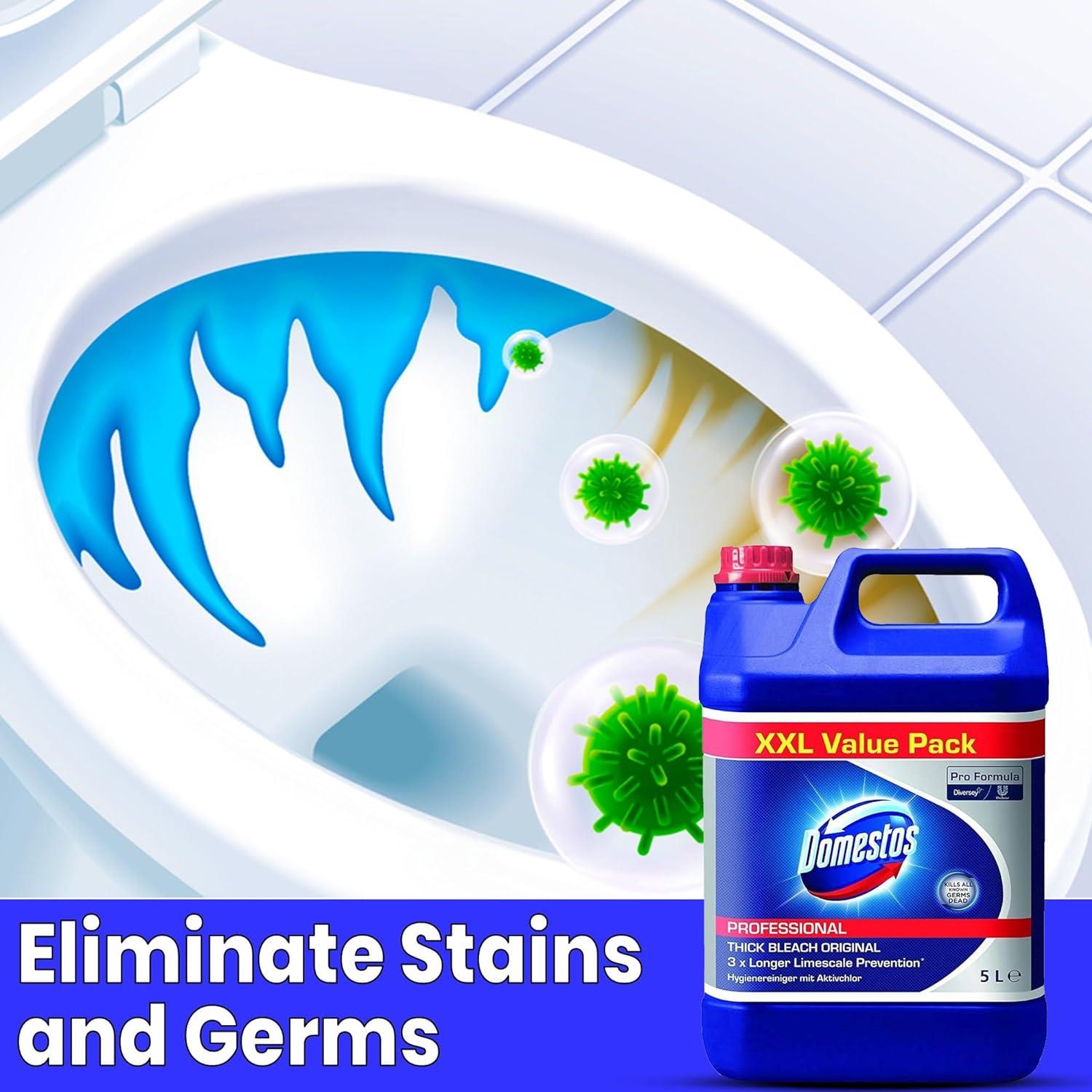 Domestos Pro Formula Original Thick Bleach is a powerful and advanced bleach designed to provide effective cleaning and germ-killing capabilities. This thick bleach is formulated with innovative ANTI-LIMESCALE active molecules that adhere below the waterline, targeting stains and preventing the buildup of limescale. Ideal for use in toilets, sinks, and waste areas, this bleach ensures a thorough clean while eliminating 99.9% of bacteria and viruses.