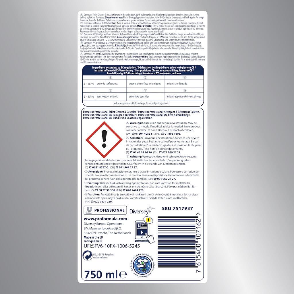 Domestos Toilet Cleaner Descaler, powered by the Pro Formula, is your dedicated solution for eliminating stubborn limescale deposits in the toilet bowl. Its longer-lasting thick formula is designed for quick action, dissolving calcium and limescale with efficiency, all while leaving behind a refreshing fragrance. This toilet cleaner is safe for use on porcelain and glazed surfaces, providing a comprehensive solution for maintaining a clean and odor-free toilet.