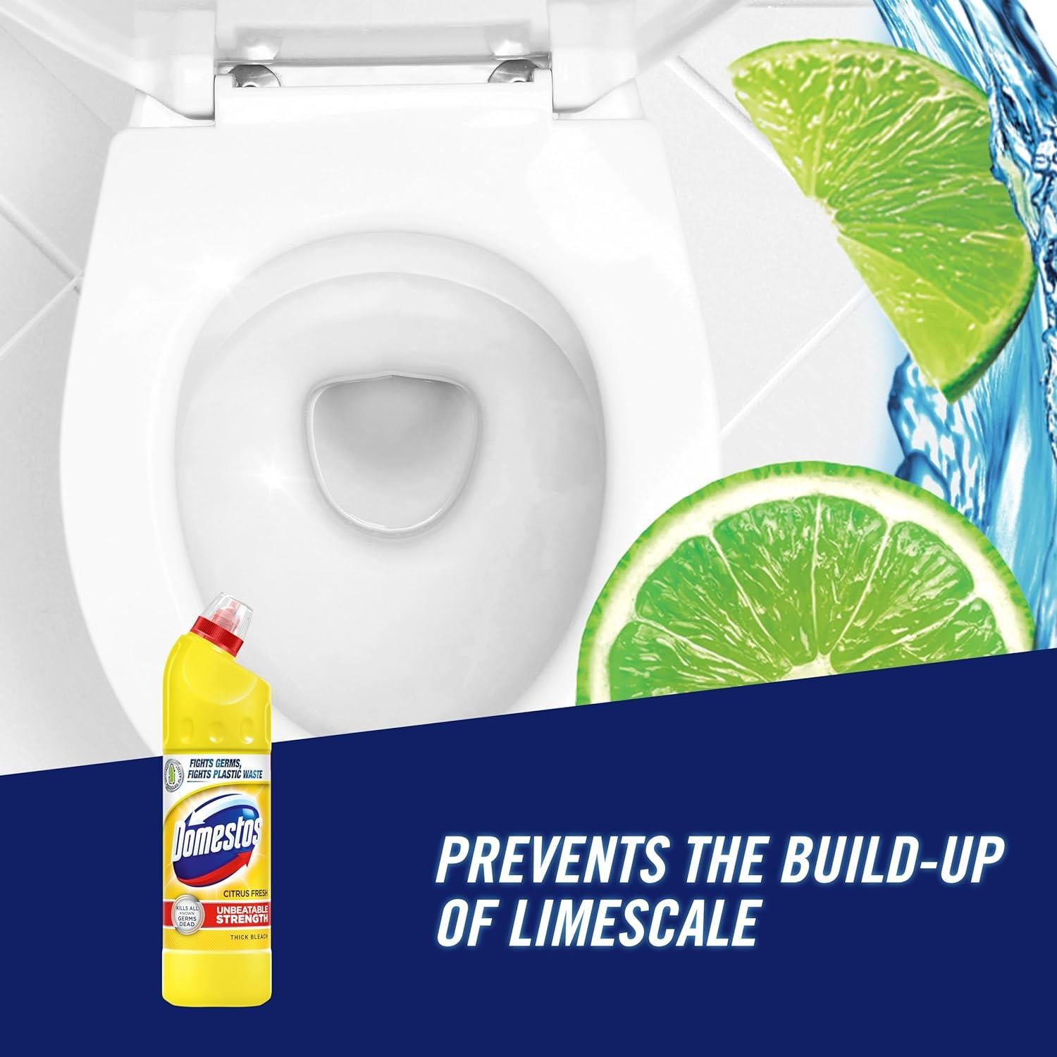 Domestos Thick Bleach is your powerful ally in maintaining a hygienic and stain-free home. This disinfectant bleach is designed to kill germs, eliminate stains, and prevent limescale buildup on various surfaces. With a potent formula, it effectively removes 99.9% of bacteria and germs, ensuring a thorough and lasting clean for your living spaces.