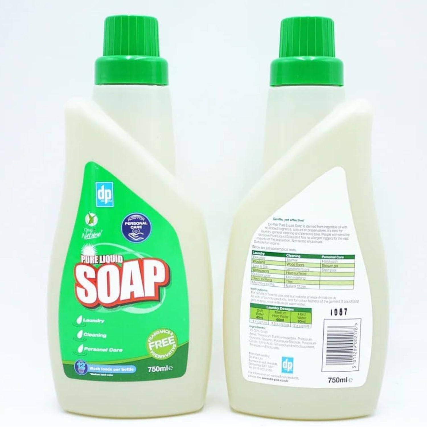 Dri Pak Pure Liquid Soap is a versatile and natural cleaning solution designed for laundry, fabric care, and personal use. Made from biodegradable ingredients, this soap is free from harsh chemicals, making it safe for sensitive skin and delicate fabrics. Its gentle yet effective formula cleans thoroughly while protecting fabrics and leaving them feeling soft and refreshed.