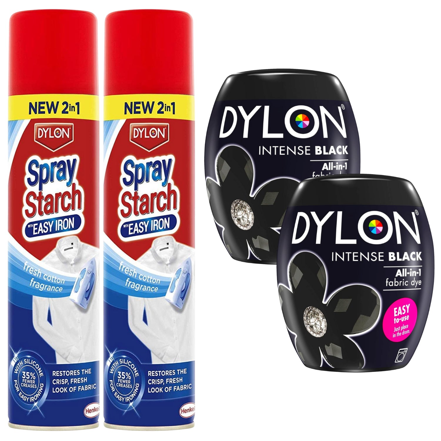 Dylon Bundle Set, designed for freshness and vibrant color in one. This set includes 2 x Dylon Starch Sprays (300ml) to keep fabrics crisp and 2 x Dylon Fabric Dye Pods (350g), each offering vibrant color restoration for up to one wash load. With this bundle, you’ll have everything needed to keep fabrics looking pristine and colorful, ensuring long-lasting freshness and brightness.