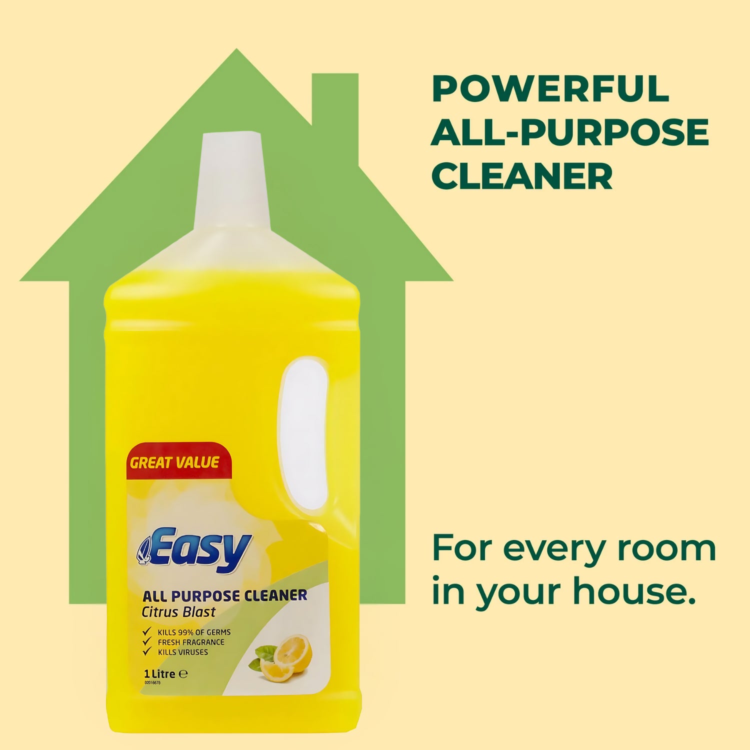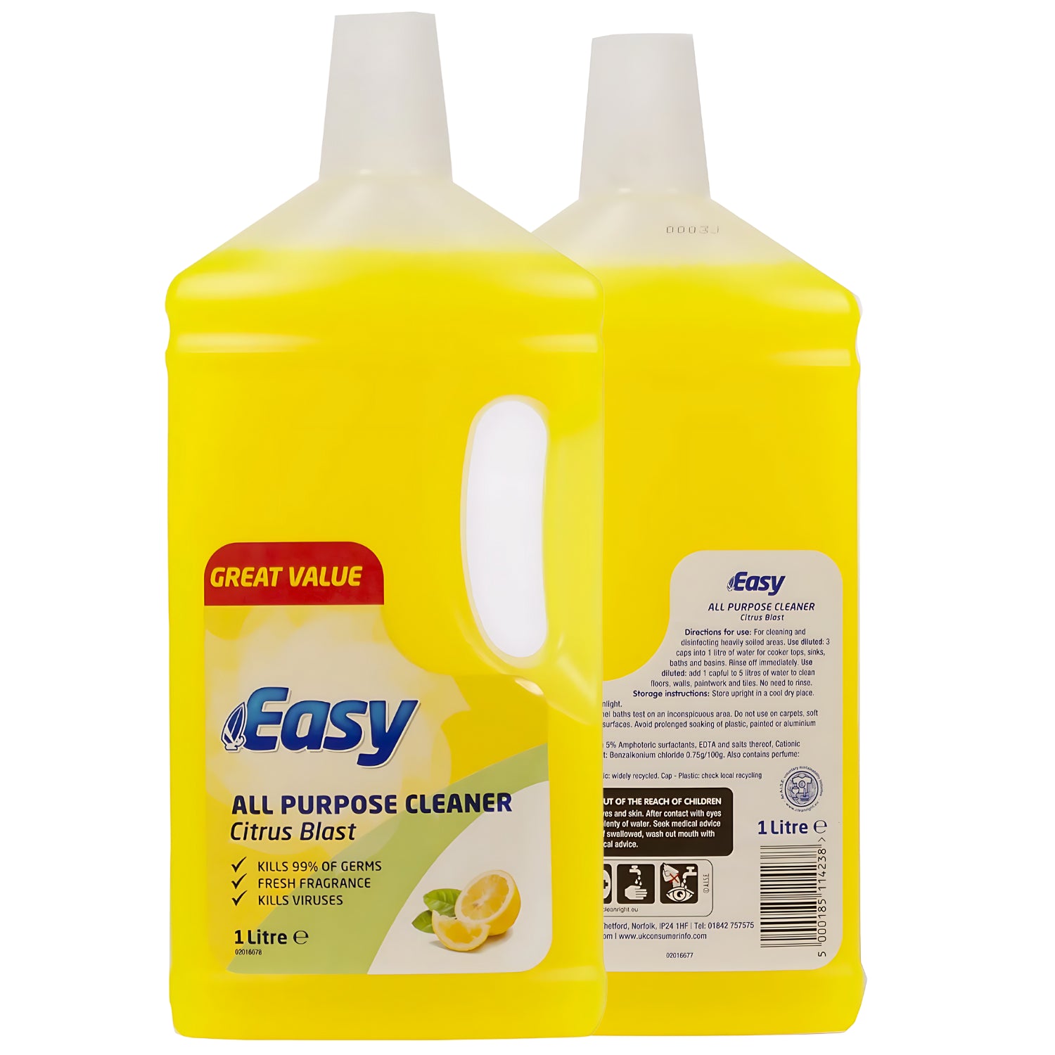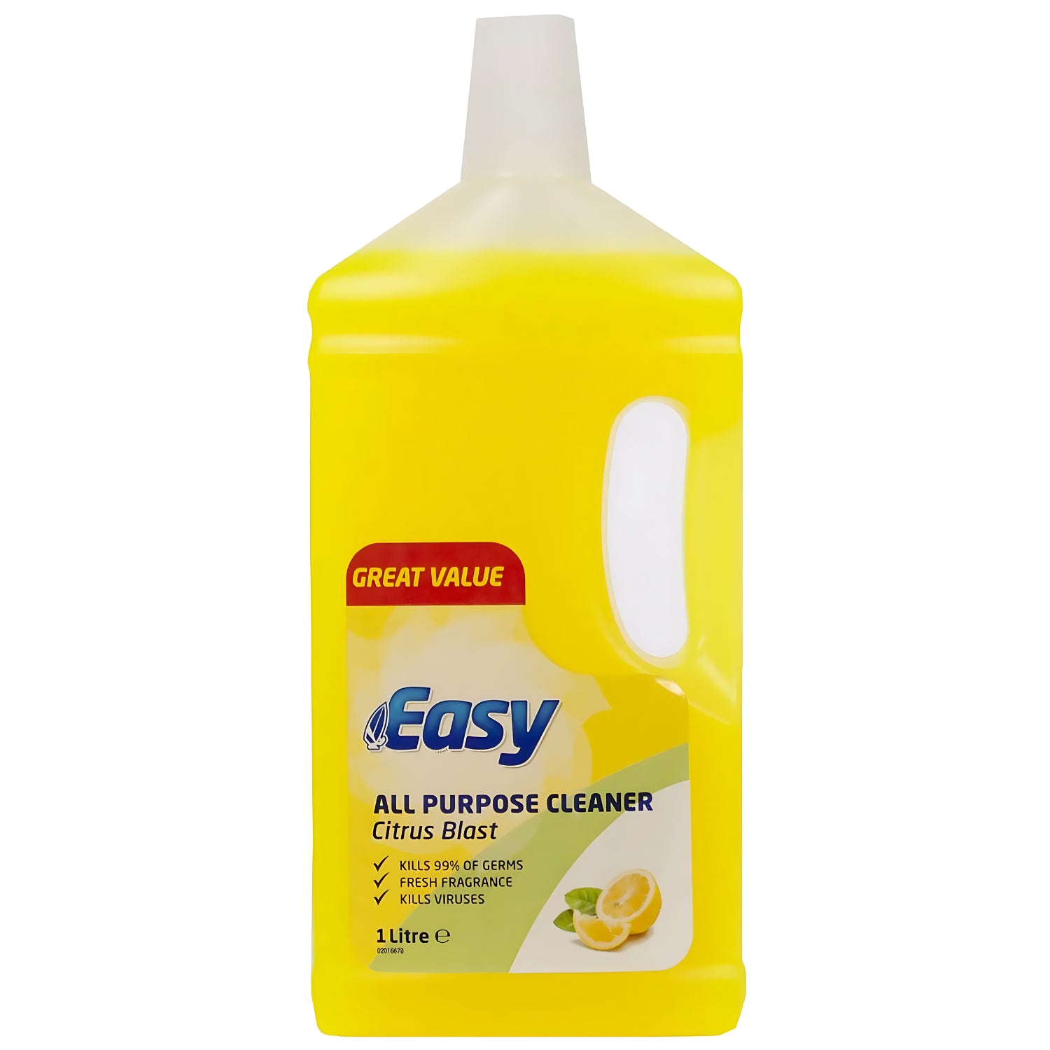 Easy All-Purpose Cleaner Citrus Blast is a powerful cleaning solution designed to tackle everyday messes while killing 99% of germs and viruses. With its refreshing citrus fragrance, this cleaner not only leaves surfaces spotless but also leaves behind a pleasant, invigorating scent. Ideal for use on a variety of surfaces, including countertops, sinks, appliances, and more, this versatile cleaner makes maintaining a clean and hygienic home easier than ever.