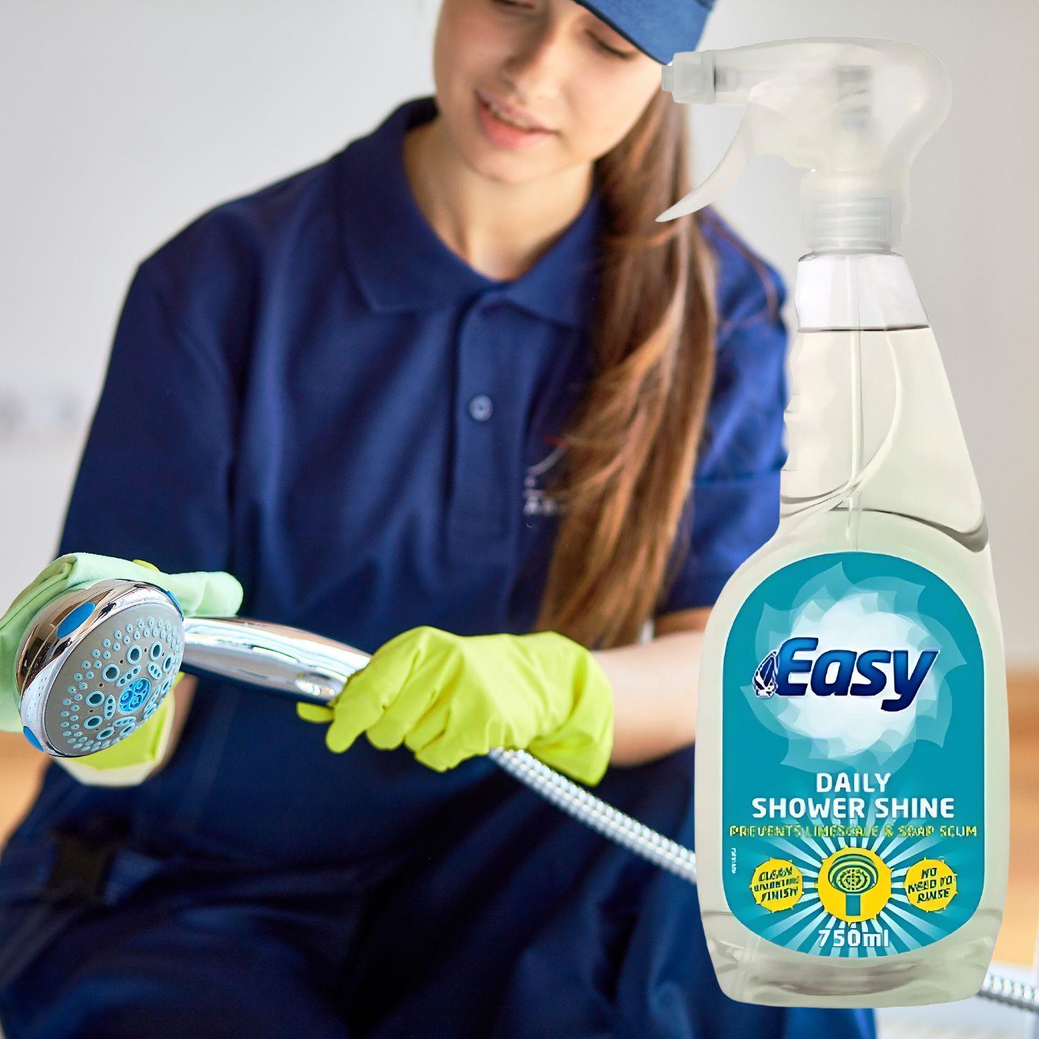 Easy Daily Shower Shine Cleaner simplifies your bathroom cleaning routine, ensuring your shower stays fresh, gleaming, and free from scum and limescale every day with minimal effort.
