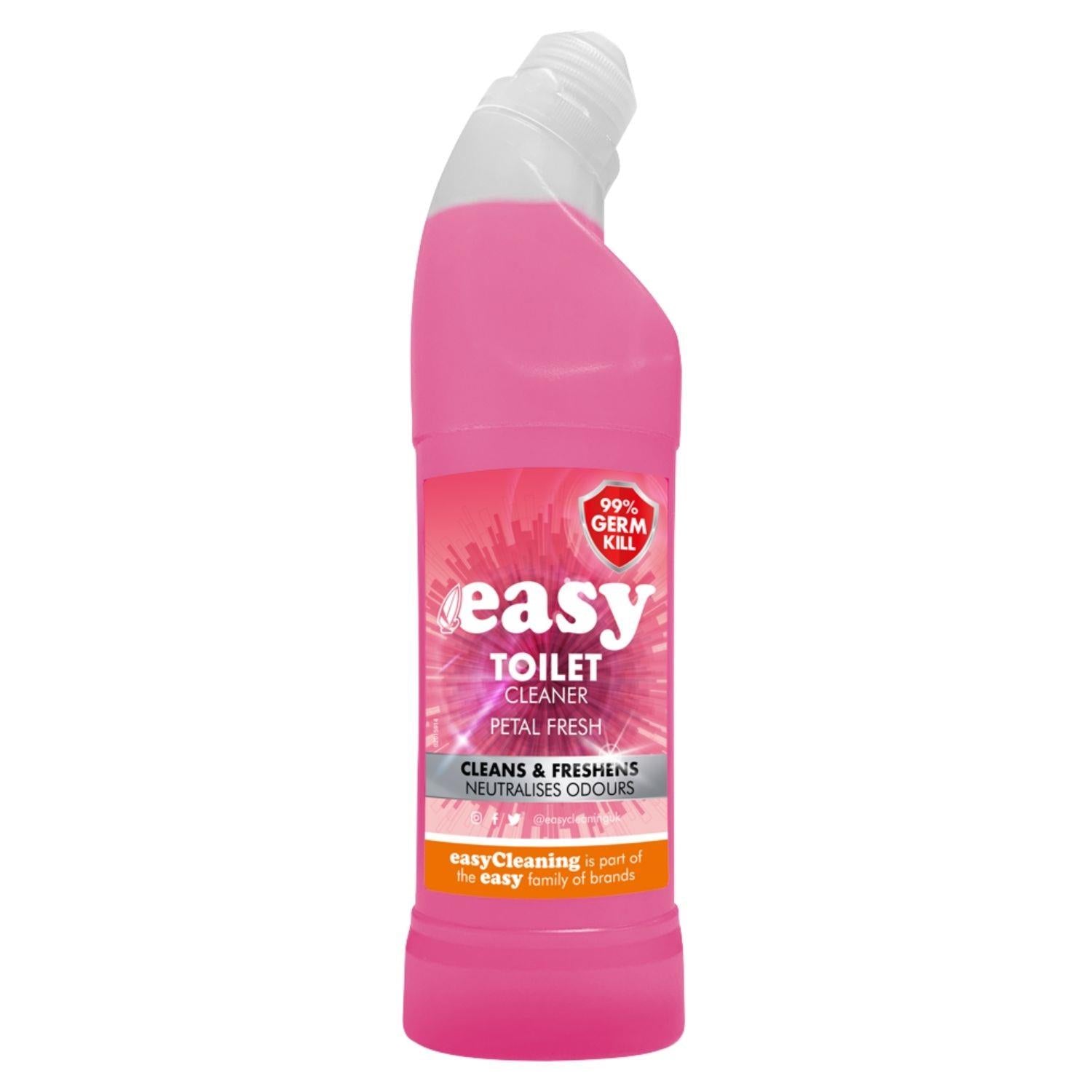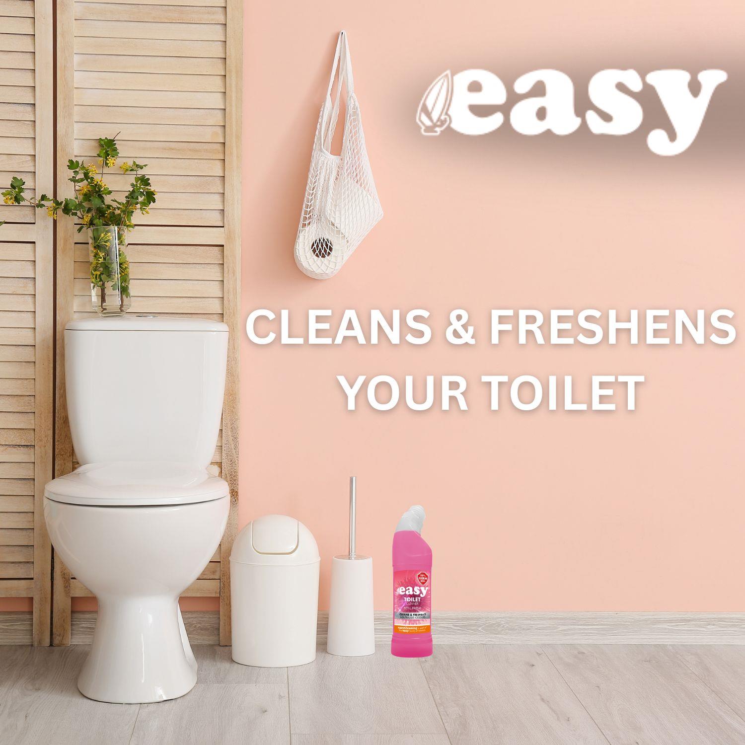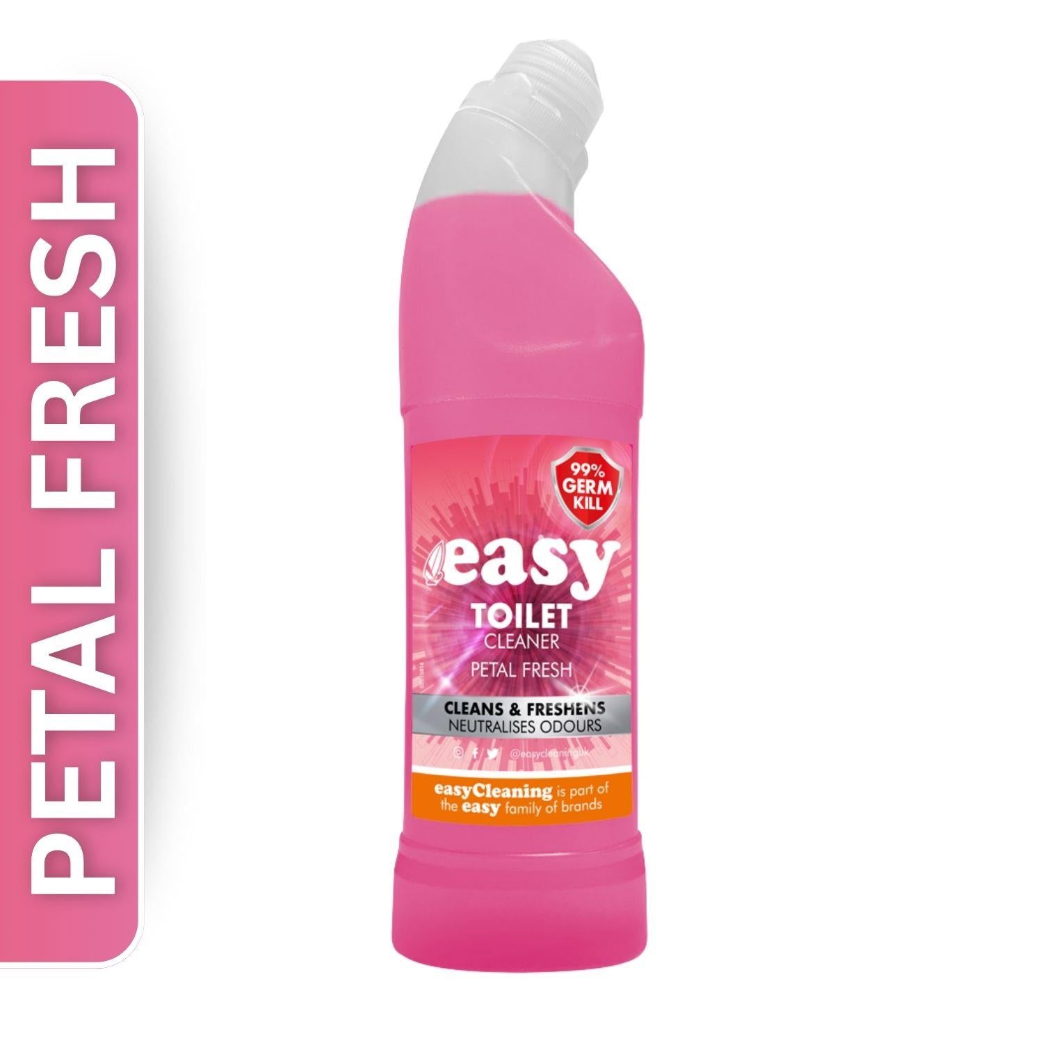 Easy Toilet Cleaner Petal Fresh 750ml is a high-performance toilet cleaner from the trusted Easy Cleaning range. Specially formulated to clean, freshen, and neutralise odours, it delivers a hygienic and long-lasting clean with every flush. With a pleasant Petal Fresh fragrance, this powerful cleaner eliminates 99% of germs, tackling tough stains and leaving your toilet visibly sparkling and smelling floral-fresh.