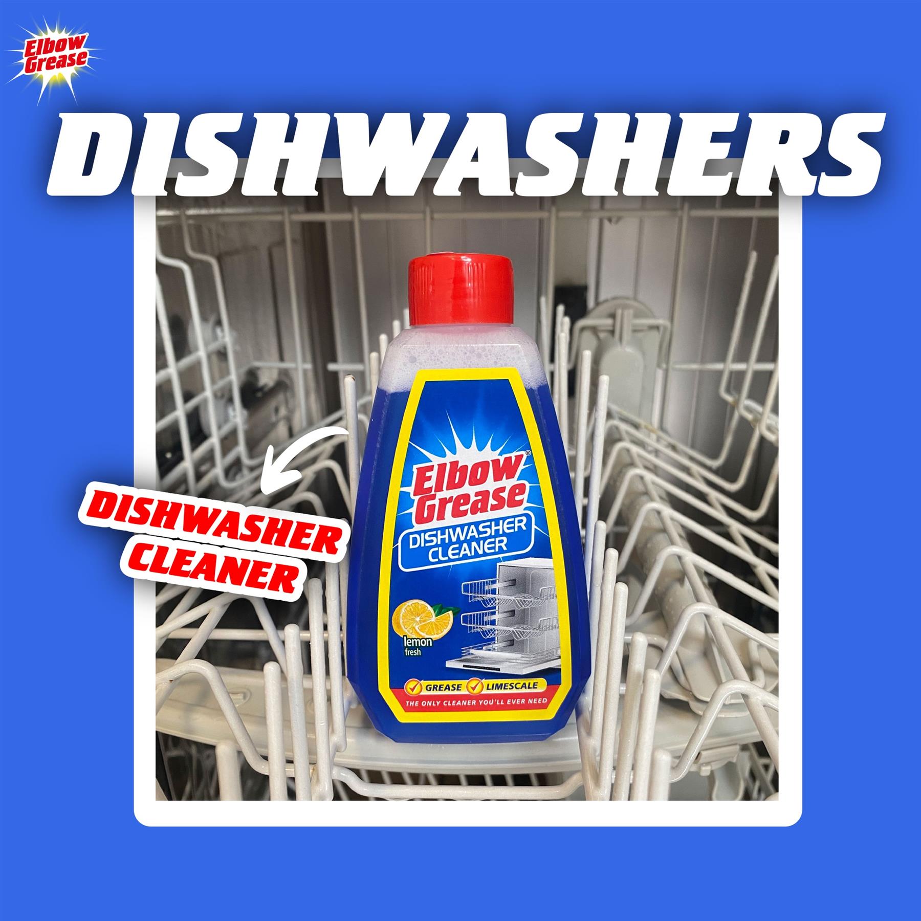 Elbow Grease Dishwasher Cleaner in Lemon Fresh scent is the perfect solution for cleaning and maintaining your dishwasher's hygiene. This 250ml bottle is designed to remove the buildup of grease, detergents, and limescale from hidden parts of your dishwasher, enhancing its performance and prolonging its life. Not only does it clean, but it also leaves your dishwasher smelling fresh and clean.
