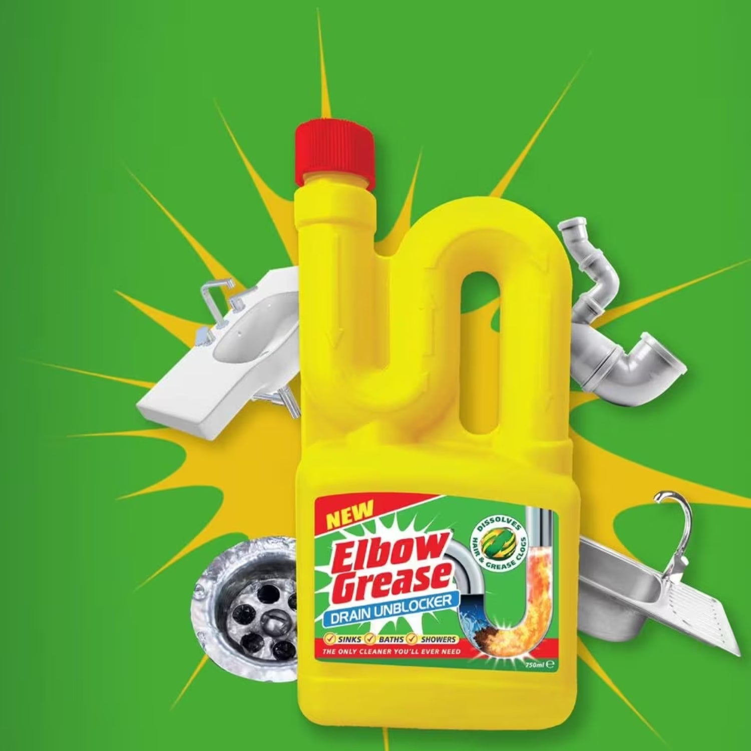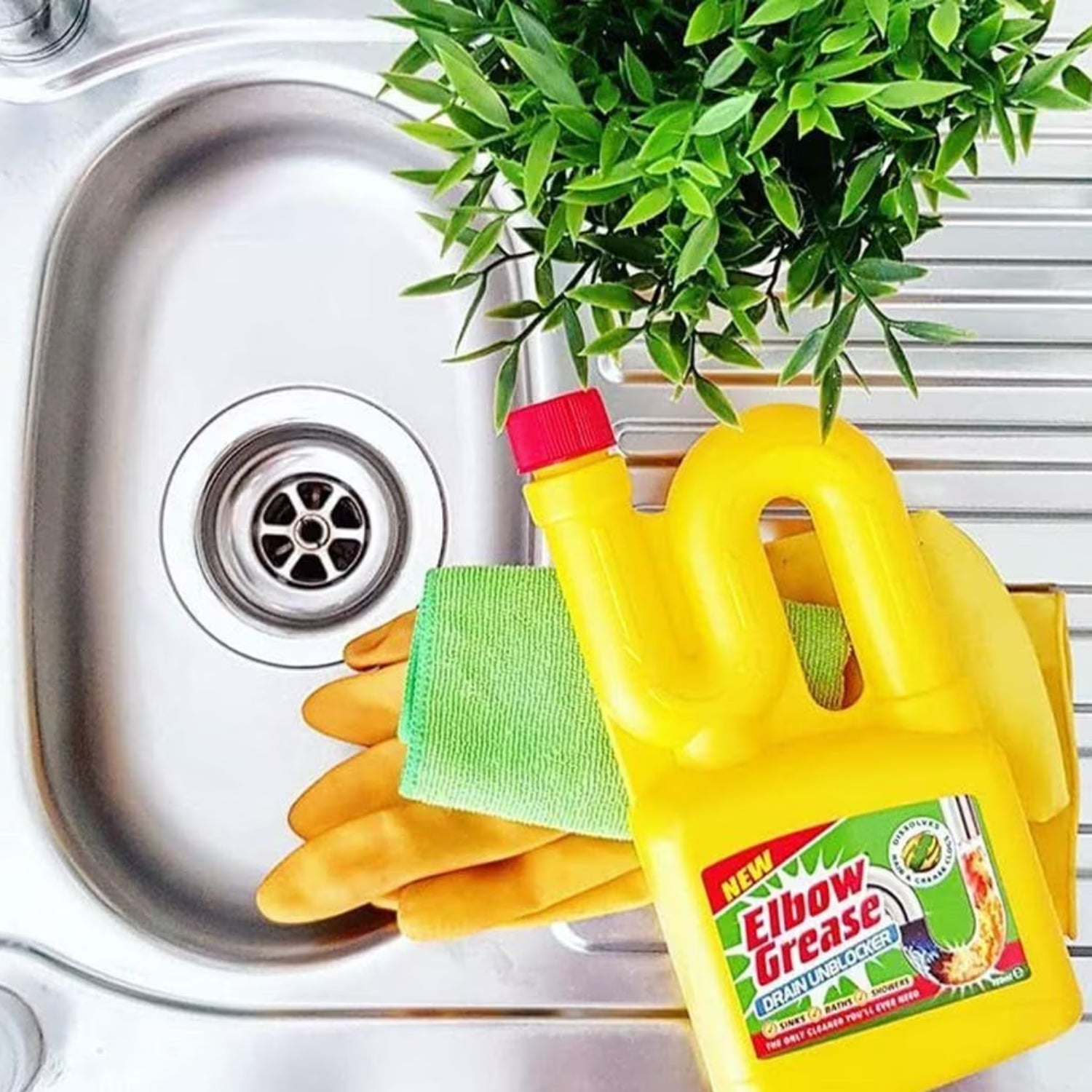Elbow Grease Drain Unblocker 750ml is a powerful formula designed to tackle stubborn blockages in sinks, baths, and showers. Specially formulated to dissolve and clear tough clogs caused by hair, soap scum, grease, and other debris, this drain unblocker works quickly and effectively to restore free-flowing drains. Its fast-acting action penetrates deep into the blockage, breaking it down and eliminating unpleasant odors. Ideal for both kitchen and bathroom use, Elbow Grease Drain Unblocker is an essential solution for maintaining clean, efficient plumbing.