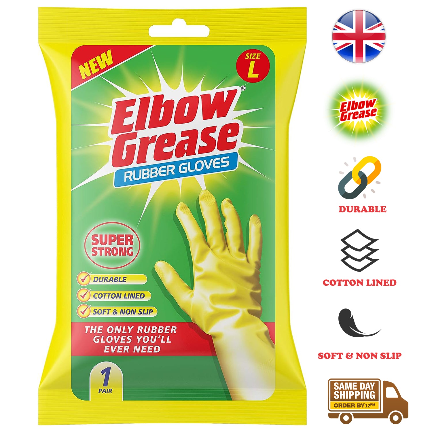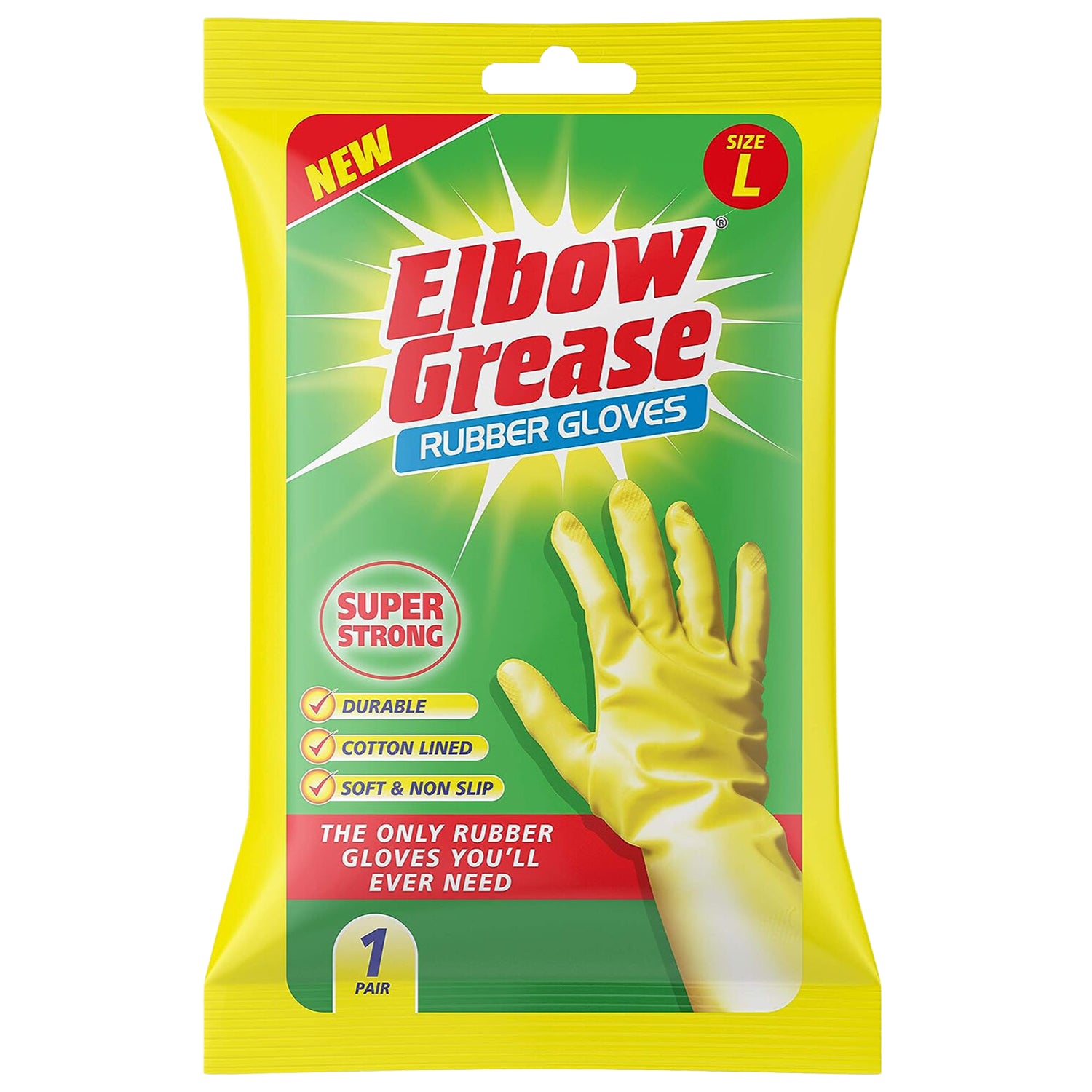 Elbow Grease Rubber gloves are ideal for household use. They are strong, flexible and tough for all jobs around the home. The gloves are also flocked lined for comfort.