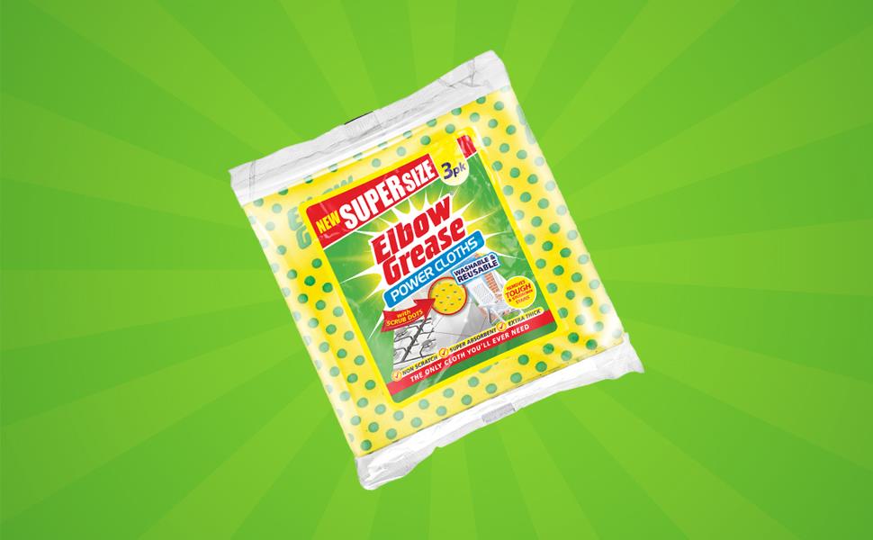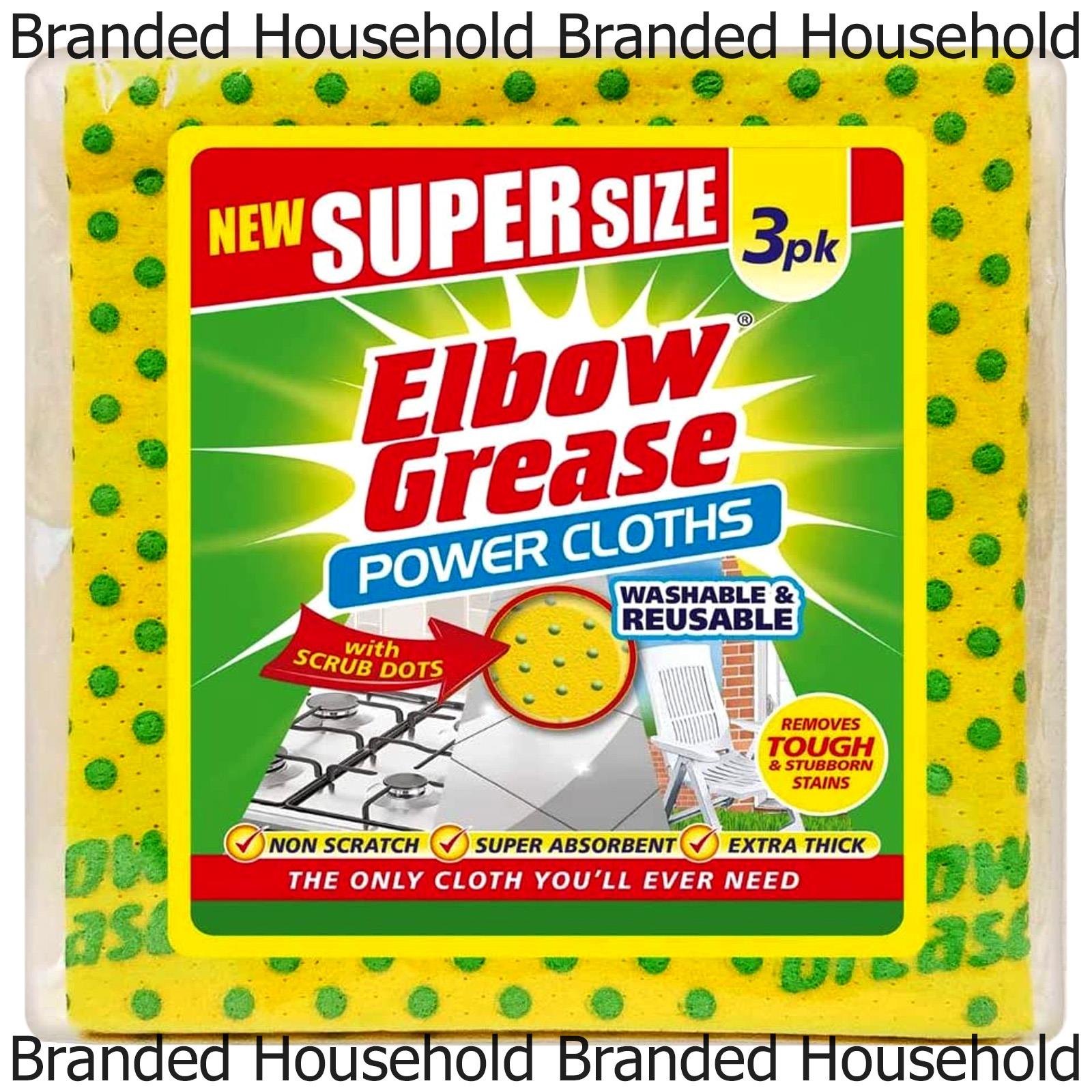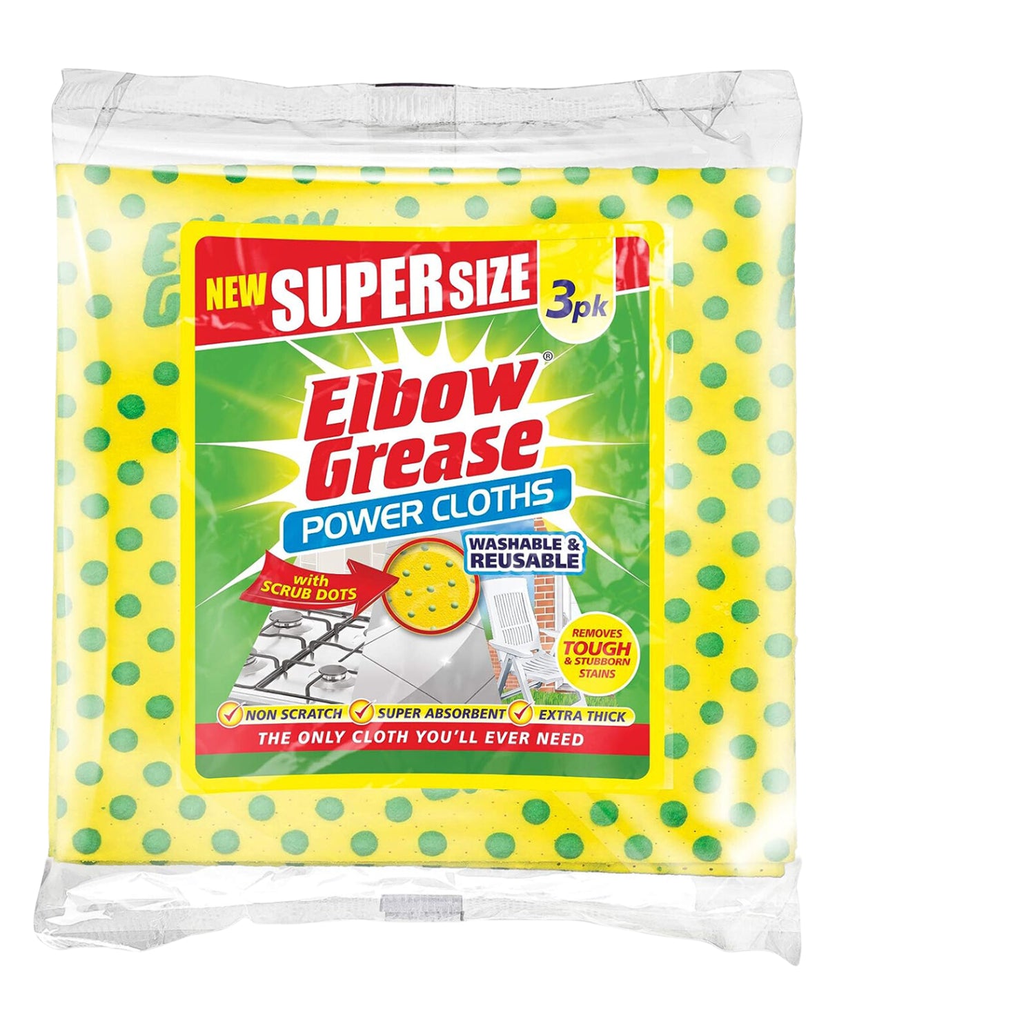 Elbow Grease Tackle stubborn greasy and oily pots, pans and crockery with these Elbow Grease Super Size Reusable Power Cloths. Coming in a great value pack of 3, each cloth measures 36 x 35 cm and features scrub dots that make light work of removing stubborn stains, burnt-on food and grease marks. The non-scratch cloths are super absorbent and machine washable so you can use them time and again. They're high quality too, so they'll see you through mountains of washing up.