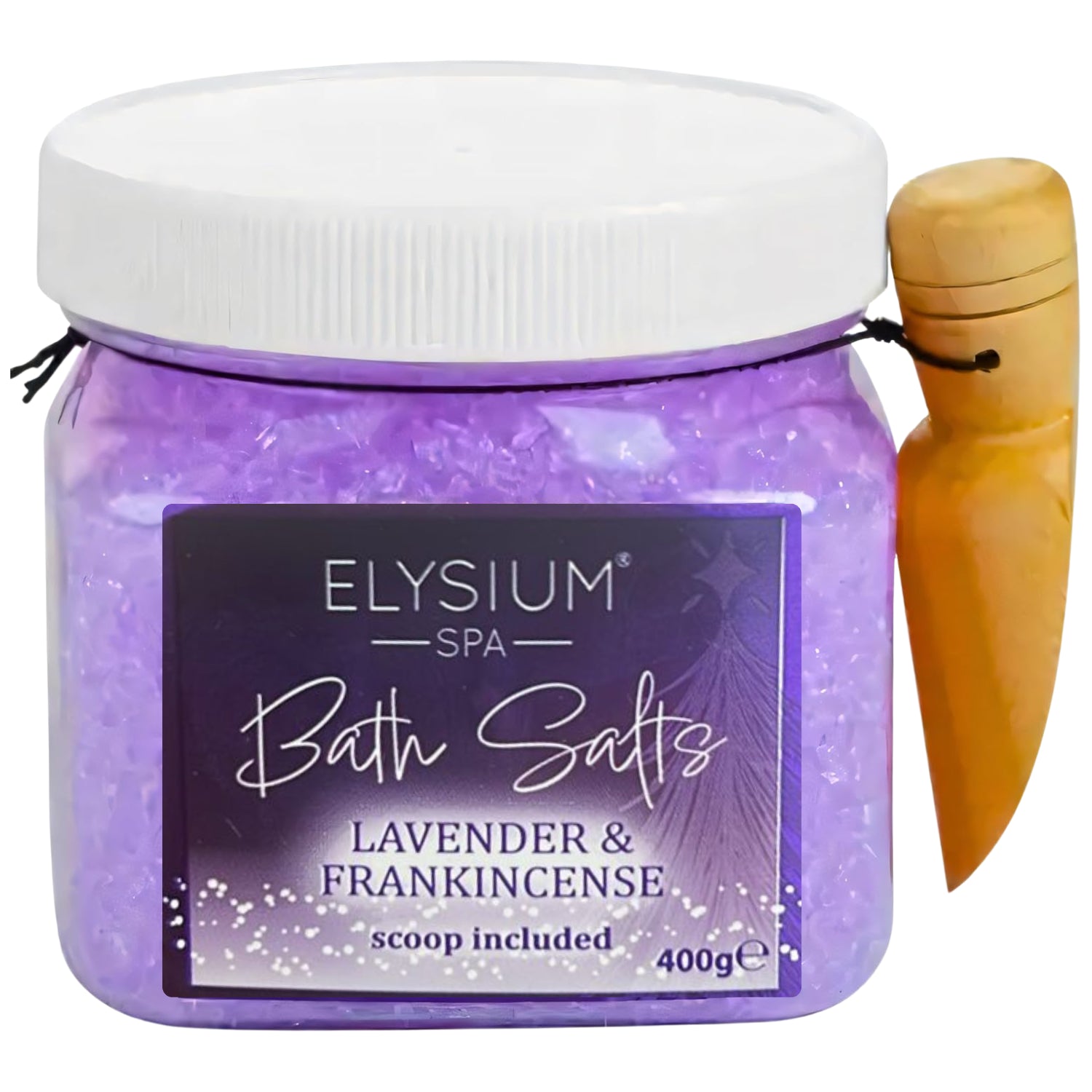 Indulge in the ultimate relaxation with Elysium Spa Bath Salts Lavender & Frankincense your perfect companion for a calming and rejuvenating bath experience.