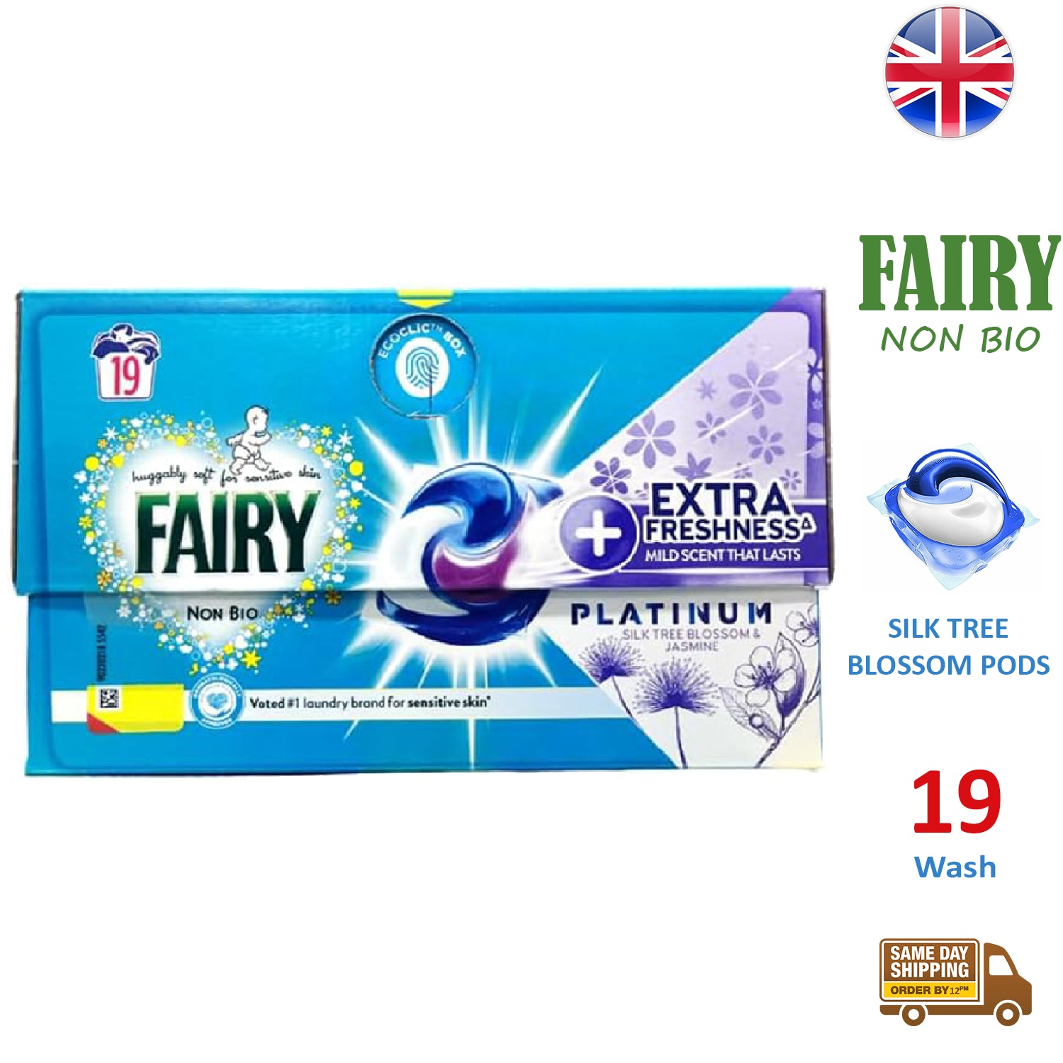 Fairy Non Bio Pods for Laundry Clothes Platinum Extra Freshness offer a convenient and effective way to clean and refresh your laundry. Infused with the delicate scent of Silk Tree Blossom and Jasmine, these pods provide a gentle yet powerful cleaning experience, suitable for sensitive skin.