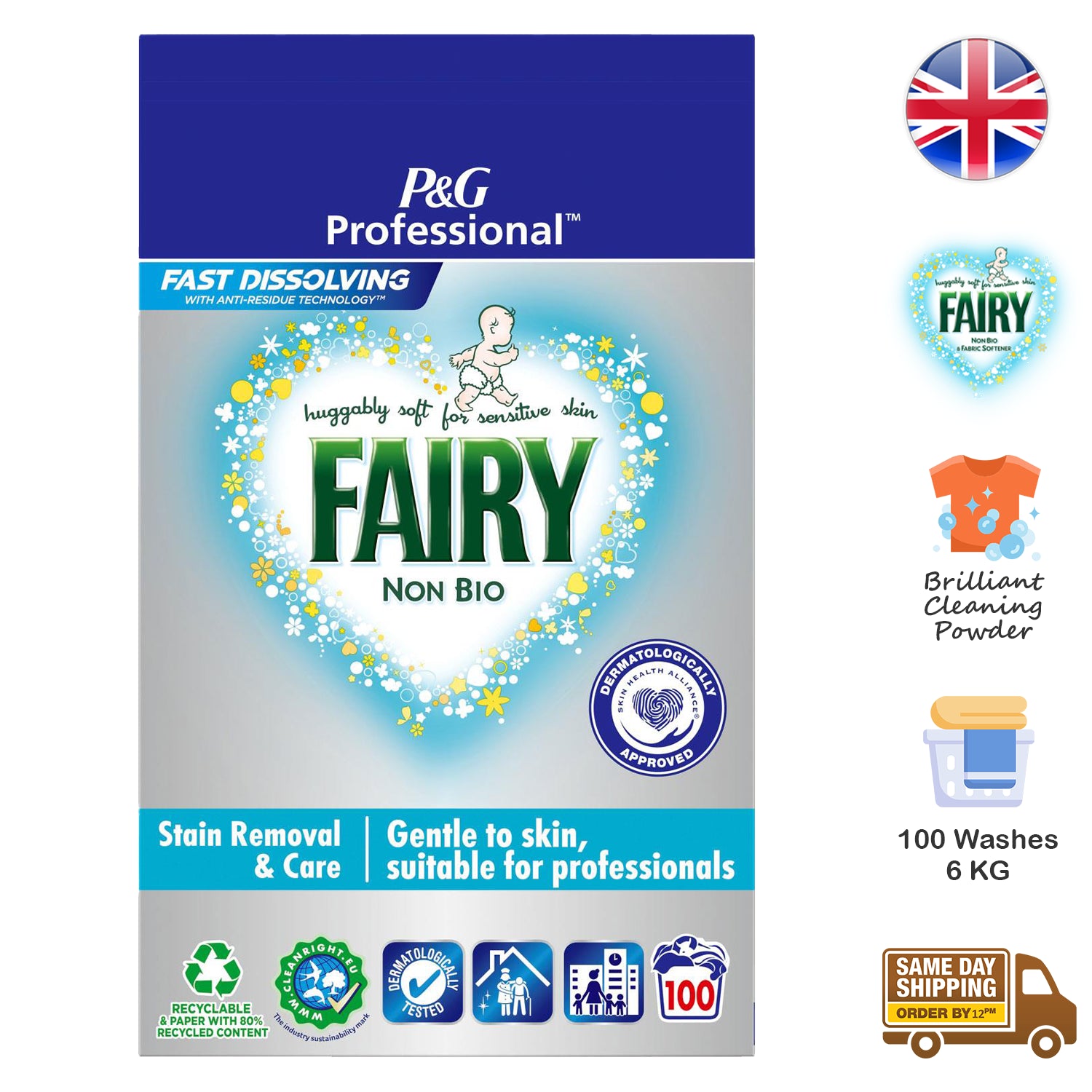 Fairy Non Bio Washing Powder, the epitome of impeccable cleanliness and unmatched gentleness for your laundry. This washing powder by Fairy ensures your clothes emerge brilliantly clean while maintaining a gentle touch on precious skin. Dermatologically tested and proudly displaying the Skin Health Alliance seal, this laundry detergent is the embodiment of care and quality. Trusted by caring moms for years, Fairy Non Bio washing powder is the perfect choice for those seeking the potent cleaning power of a Non Bio formula. For the softest combination, pair it with Fairy Fabric Conditioner, offering unparalleled gentleness for your baby's delicate skin.