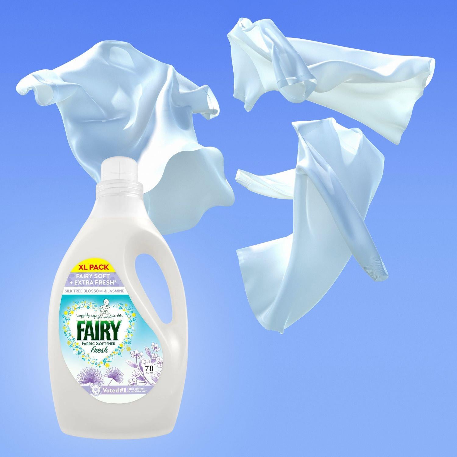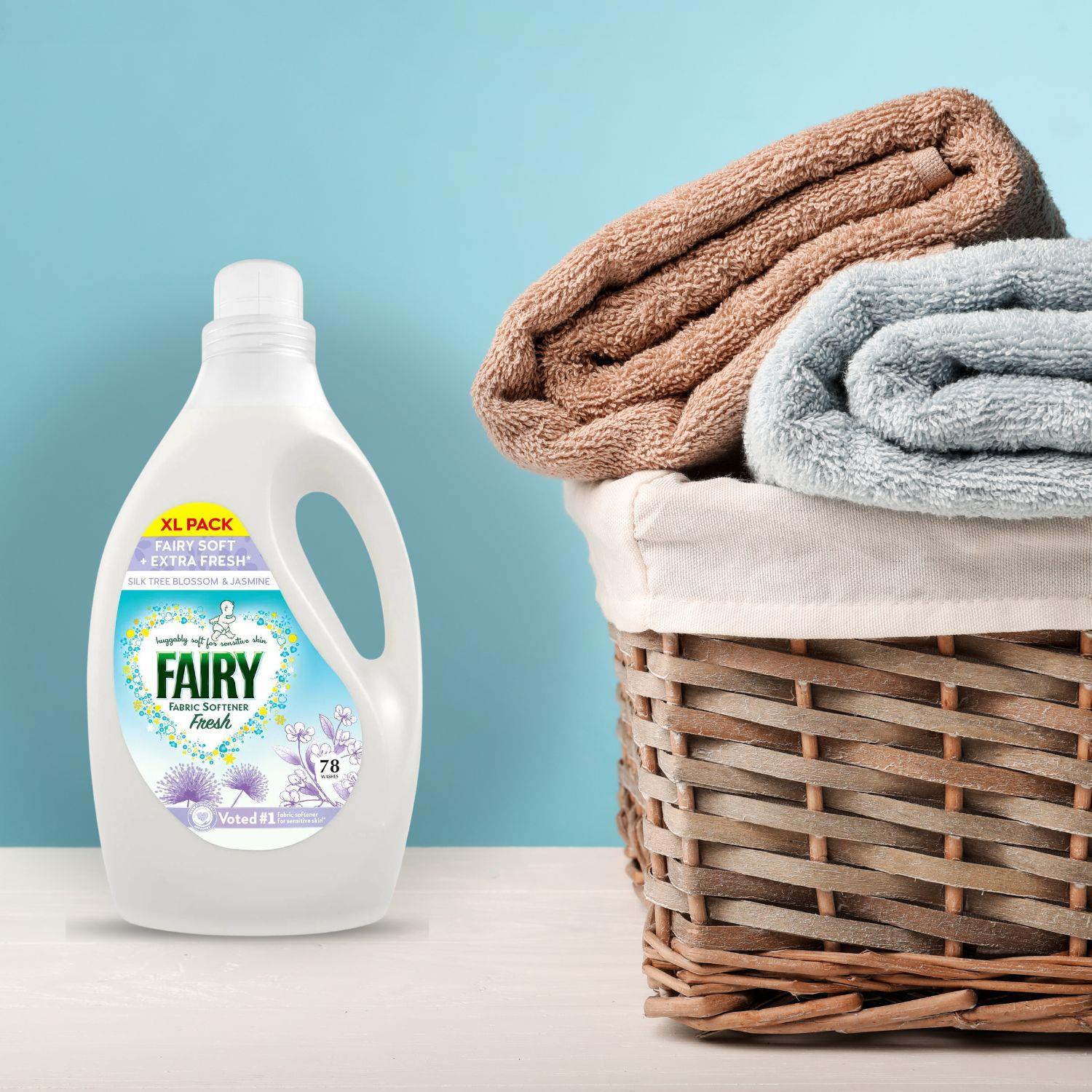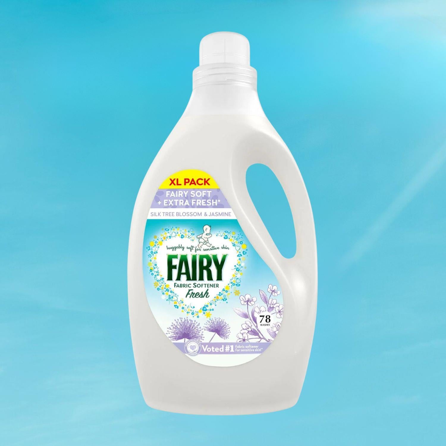 Fairy Fabric Softener Fresh Silk Tree Blossom & Jasmine is specially crafted to provide long-lasting softness and a delicate fragrance to your laundry. Its gentle formula makes it suitable for sensitive skin, offering the same level of care that Fairy is known for. Infused with a refreshing blend of Silk Tree Blossom and Jasmine, this fabric softener brings a calming, fresh aroma to your fabrics. Ideal for baby clothes and those with delicate skin, it offers 78 Washes in every bottle, ensuring clothes stay soft, fresh, and lightly scented.