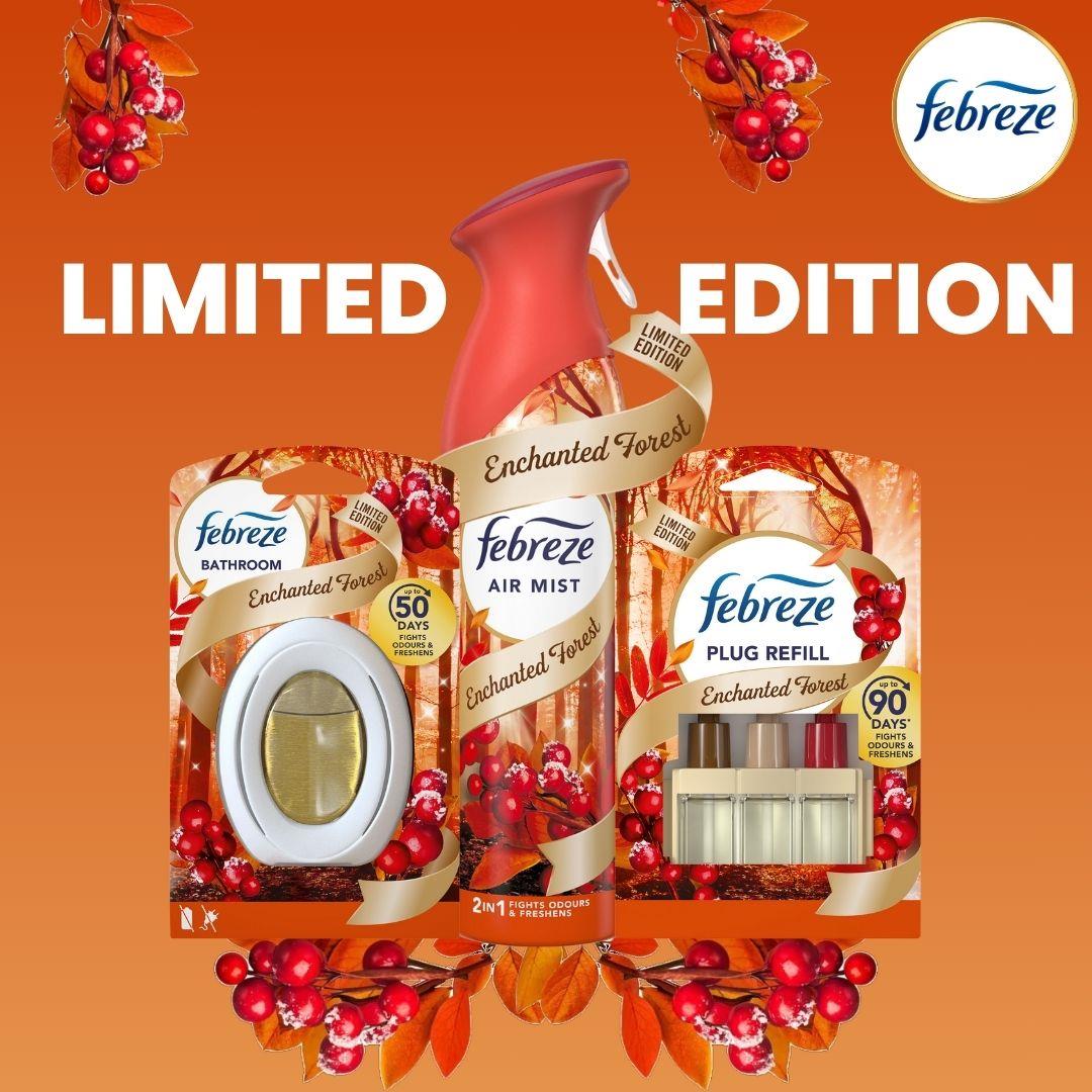 Immerse your home in the enchanting aroma of the Febreze Enchanted Forest Fragrance 3 Piece Bundle, a captivating trio designed to infuse your space with a rich, forest-inspired fragrance. This bundle includes the Febreze 3Volution Refill - Enchanted Forest, Febreze Bathroom Air Freshener - Enchanted Forest (7.5ml), and Febreze Air Mist - Enchanted Forest (185ml). Each product works in harmony to eliminate odors while leaving behind the refreshing and soothing scent of nature. Perfect for creating a calming and aromatic environment in every room of your home.
