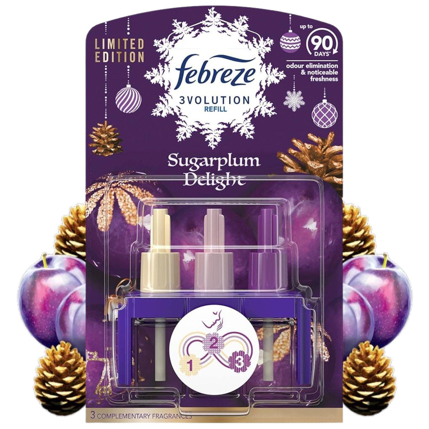 Prepare your home for the magical scent of Christmas with the Febreze Sugarplum Delight Fragrance 5 Piece Bundle. This festive bundle is infused with the warm, cozy, and sweet scent of sugarplums, ideal for creating a welcoming holiday atmosphere. Containing five essential products, this set includes the Febreze 3Volution Refill, Febreze Bathroom Air Freshener (7.5ml), Febreze Air Mist (185ml), Febreze Fabric Refresher (500ml), and Flash Spray Wipe Done (800ml) — all in the delightful Sugarplum Delight fragrance. Perfect for filling your home with holiday cheer while keeping it fresh and clean.