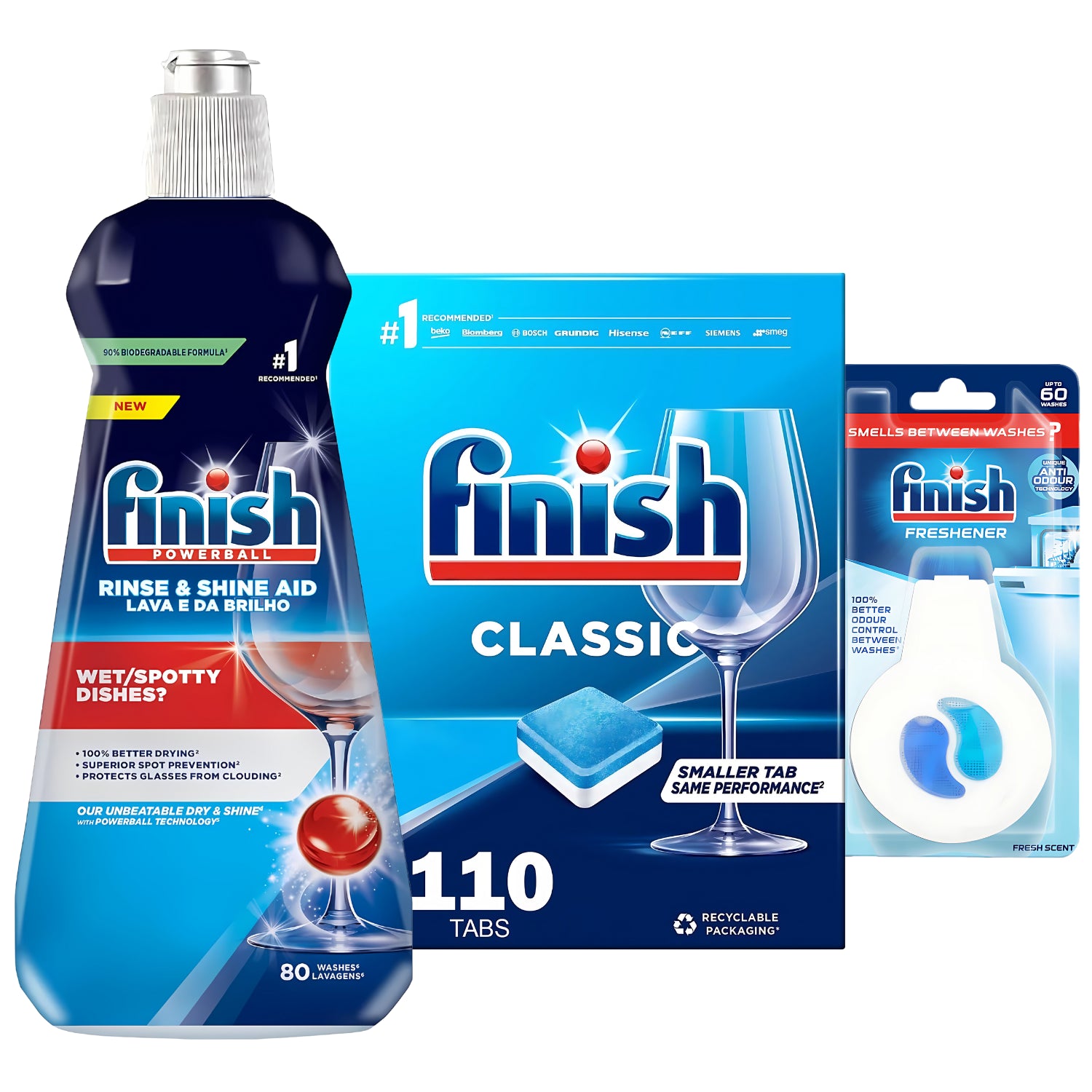 Upgrade your dishwashing experience with The Finish Powerball, Classic, and Freshener Dishwasher Bundle Set—your ultimate solution for a cleaner, fresher, and more efficient kitchen.