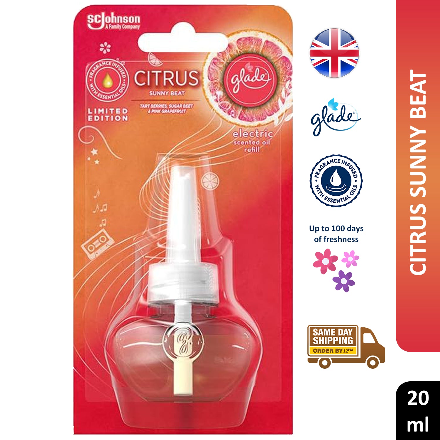 Glade Electric Plugin Citrus Sunny Beat Scented Oil Fragrance Air Refill 20ml
