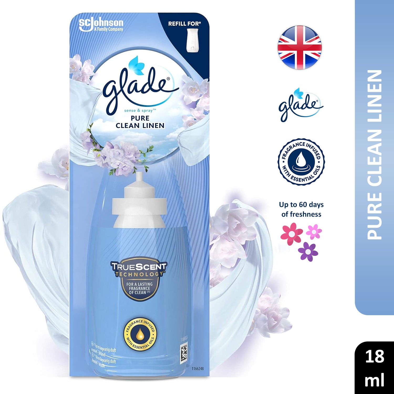 Glade Sense & Spray Pure Clean Linen Air Freshener Refill Home Office Hotel 18ml