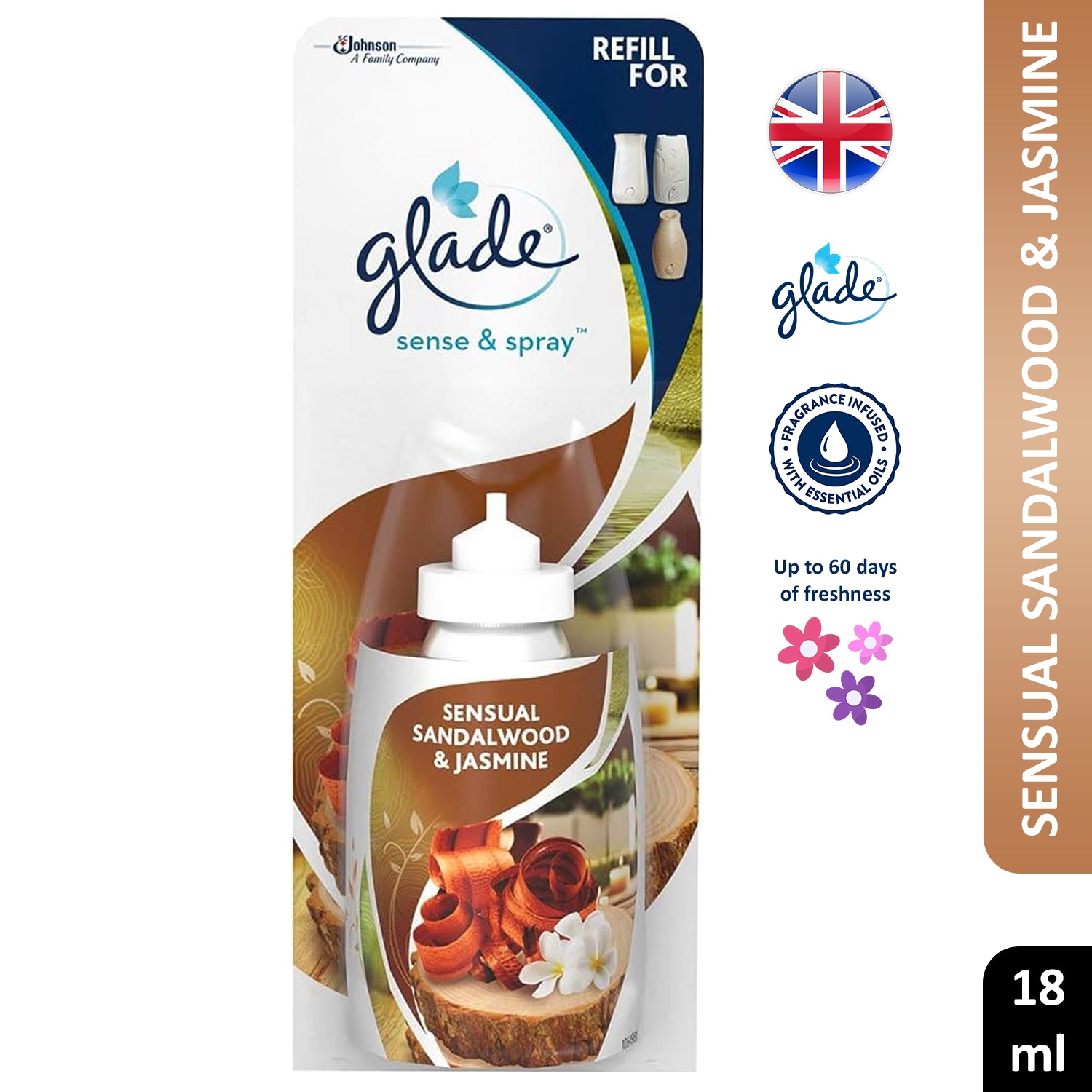 Glade Sense & Spray Sensual Sandalwood & Jasmine Air Freshener Refill Home 18ml