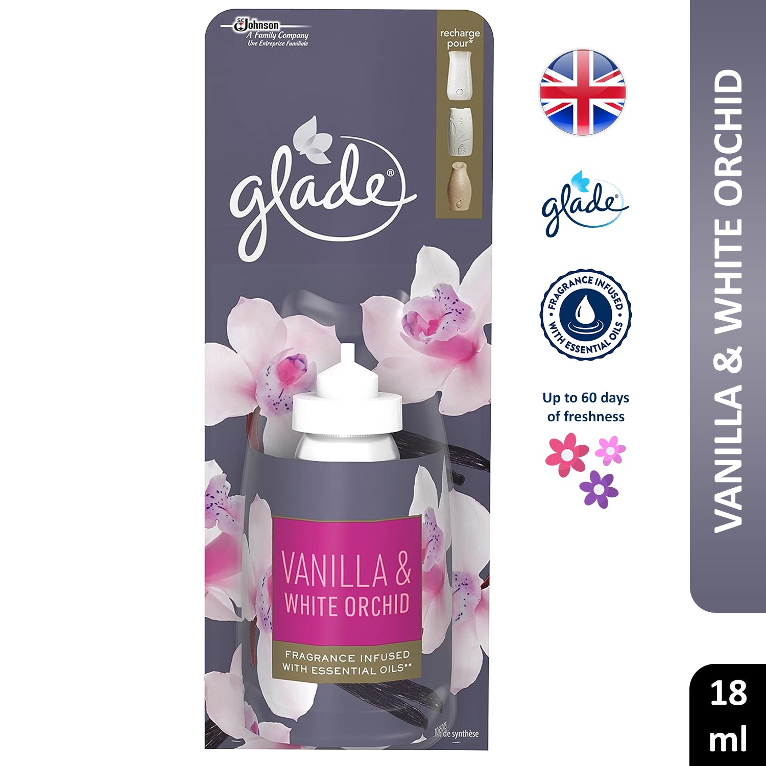 Glade Sense & Spray Vanilla & White Orchid Air Freshener Refill Home Office 18ml