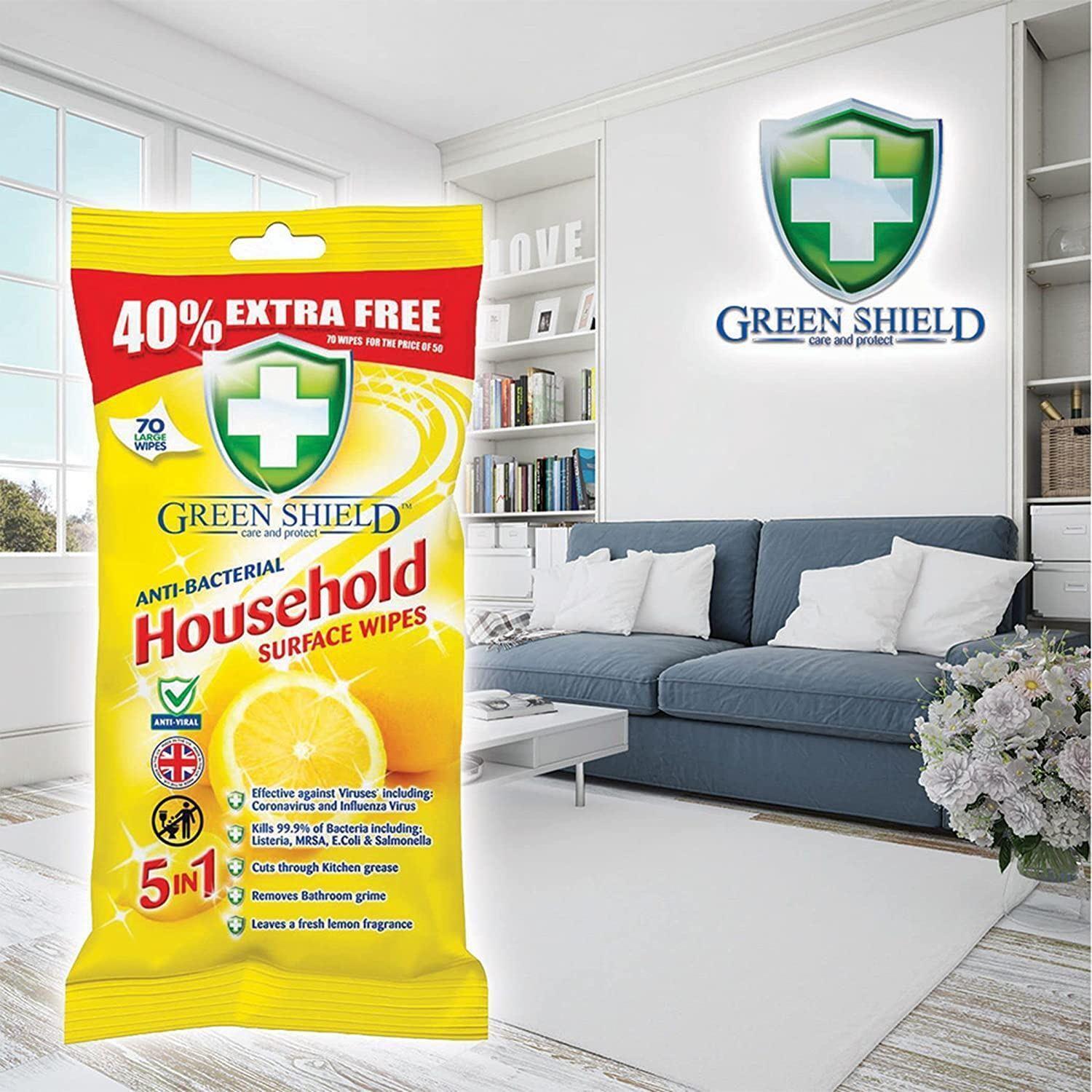 Green Shield Surface Cleaning Wipes are versatile and effective wipes designed to remove dirt, protect surfaces, and provide a convenient cleaning solution for various areas in your home. These wipes are available in multiple types, each tailored for specific surfaces such as microwaves, fridges, glass, windows, disinfectant surfaces, bathrooms, wood, laminate, leather, stainless steel, household surfaces, floors, food surfaces, and handy wipes for anti-viral and anti-bacterial needs.