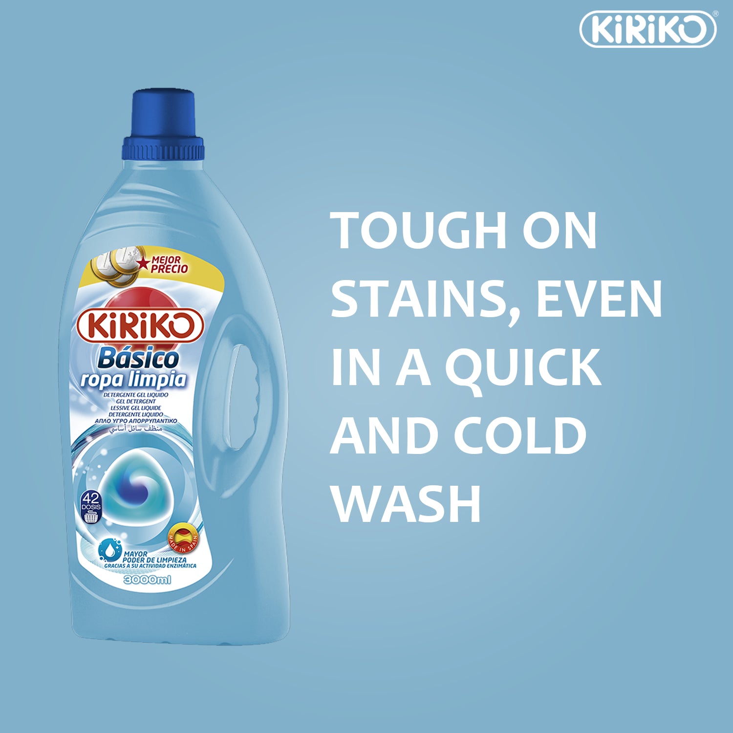 Kiriko Liquid Gel Detergent, an essential member of the Basico (Essentials) collection. Crafted for both hand and machine washing, this detergent ensures vibrant colors and an invigorating fragrance after every wash. As a non-bio detergent, it caters to those with sensitive skin.