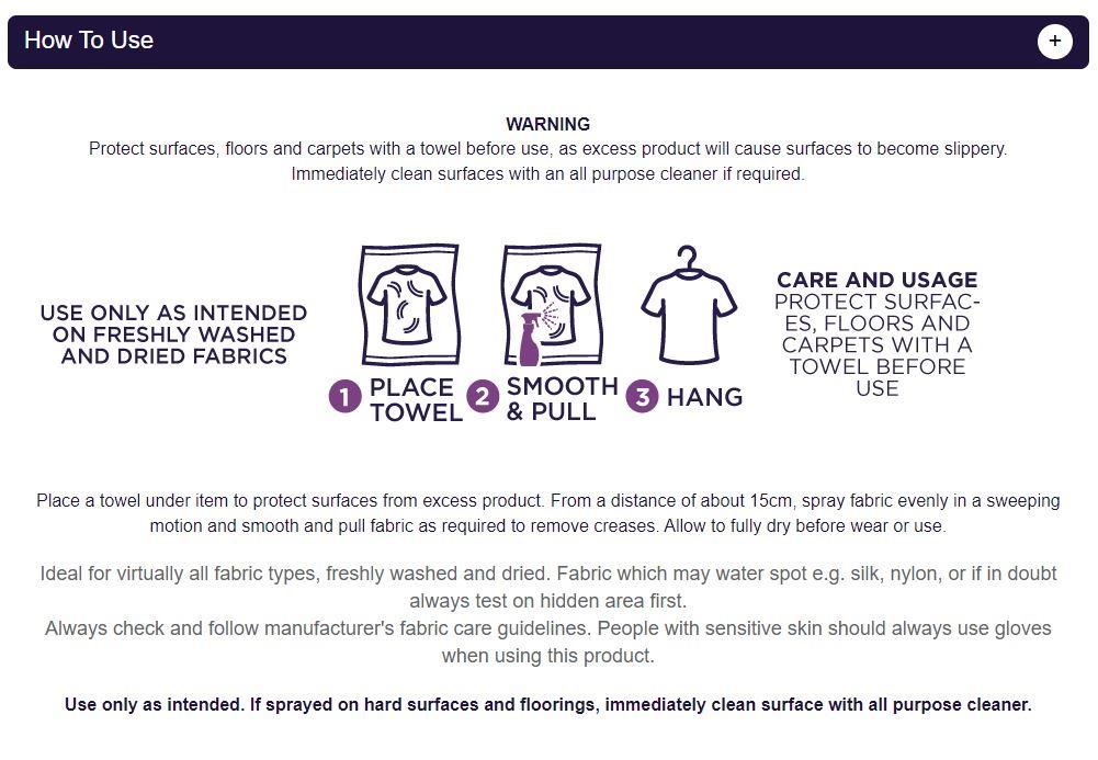 Note: Lenor Crease Releaser Spray is intended for its specified use only.