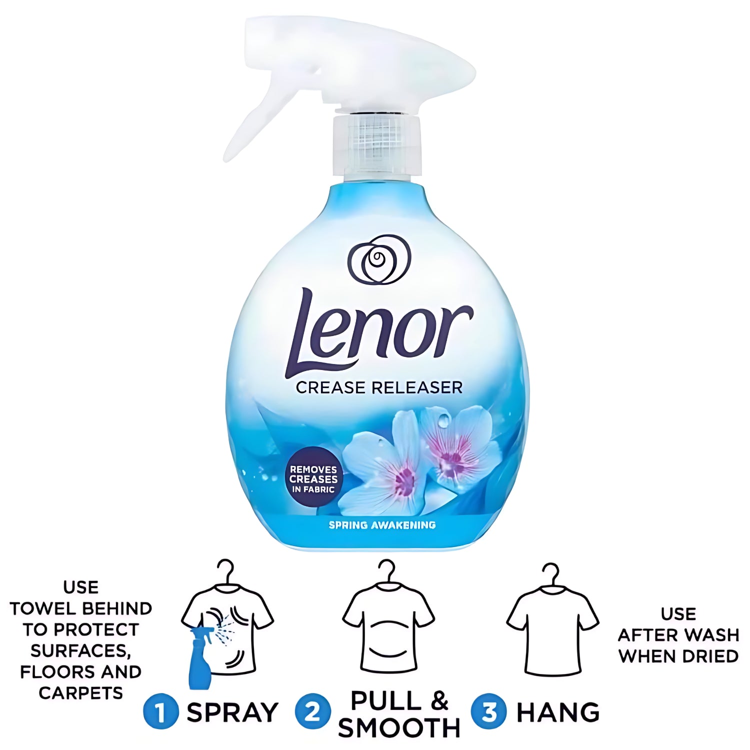 Effortlessly refresh your fabrics with Lenor Fabric Cloth Remove Crease Releaser Spray in the invigorating Spring Awakening fragrance. Designed to smooth out wrinkles and creases instantly, this spray helps keep your clothes looking neat and freshly pressed without the hassle of ironing. The uplifting Spring Awakening scent, with notes of crisp florals and vibrant freshness, revitalizes your fabrics, leaving them smelling beautifully clean. Perfect for quick touch-ups, travel, or everyday use, this crease releaser spray is a convenient solution for maintaining wrinkle-free clothing on the go.