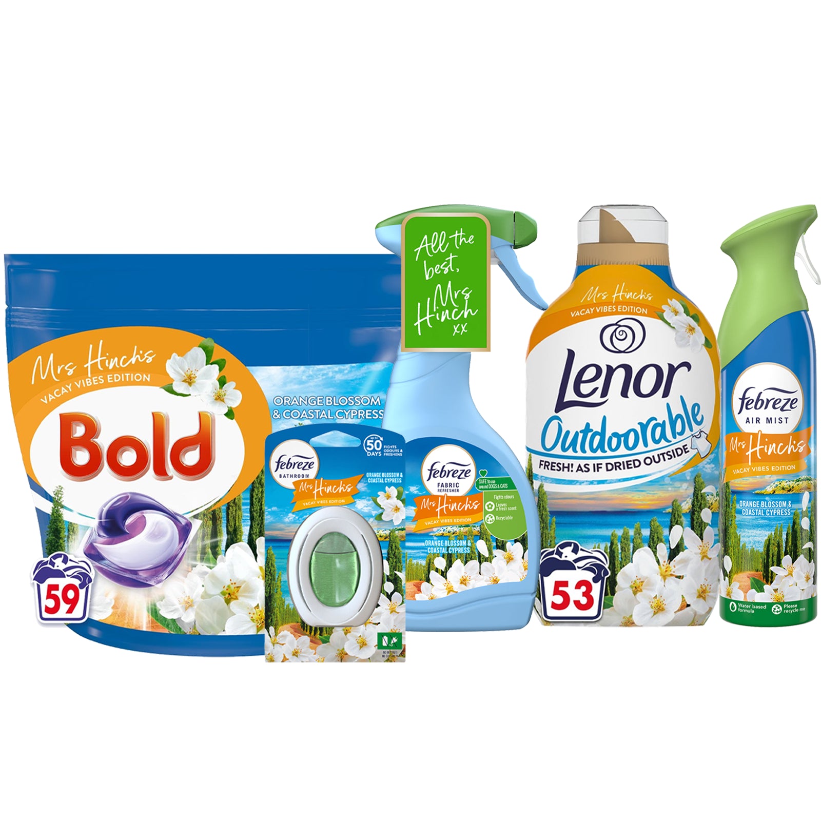 Transform your home into a refreshing oasis with Mrs Hinch's Vacay Vibes Edition Bundle Set, featuring the delightful Orange Blossom & Coastal Cypress fragrance.