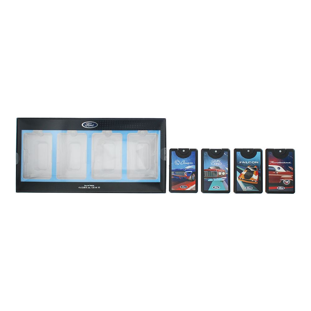 Mustang Ford Legacy Pocketspray Coffret 4 Piece Gift Set: A dynamic collection of four 20ml Eau de Toilettes � Cougar, Falcon, Gran Torino, and Thunderbird. Each fragrance offers a bold and energetic scent, perfect for on-the-go use and expressing a confident, adventurous spirit.