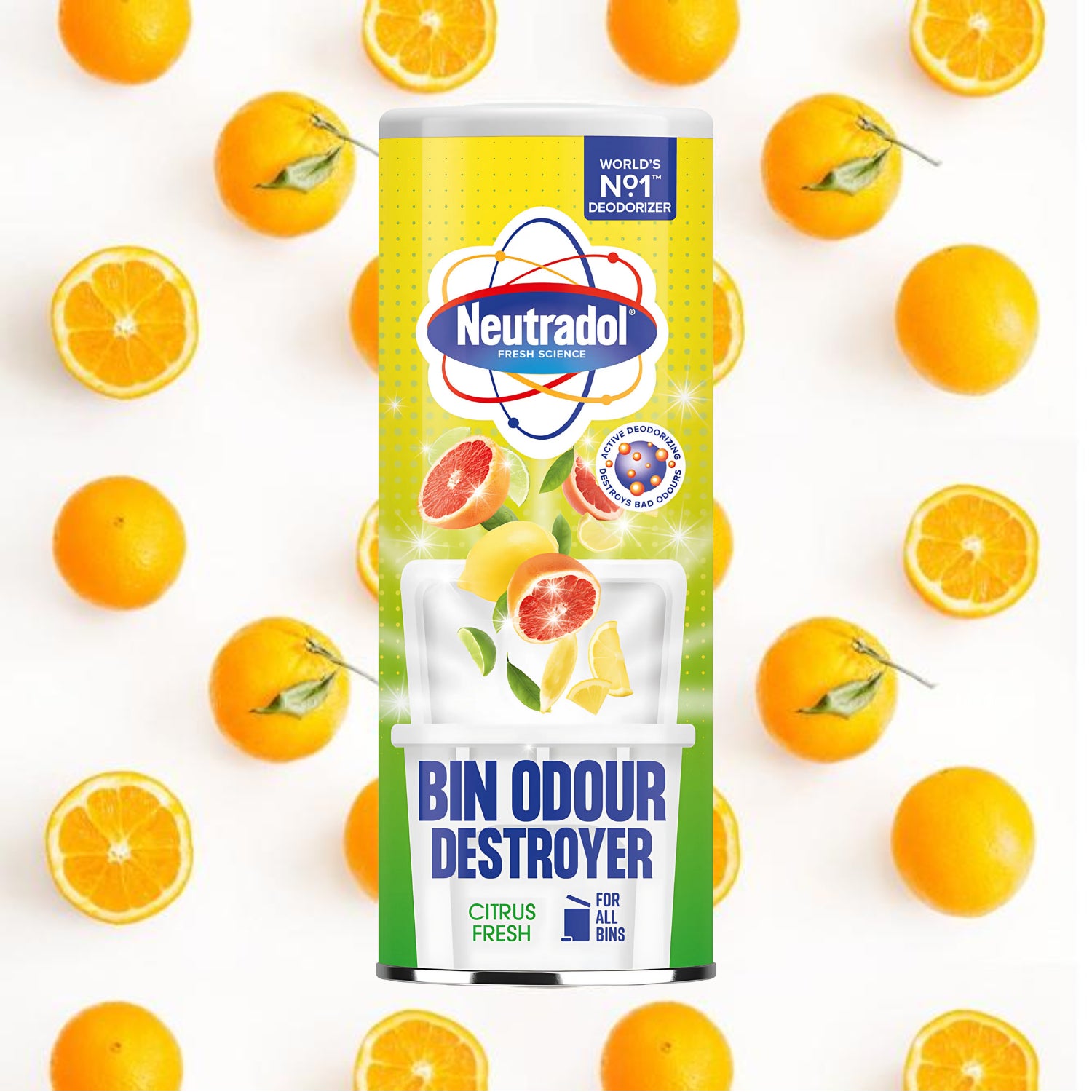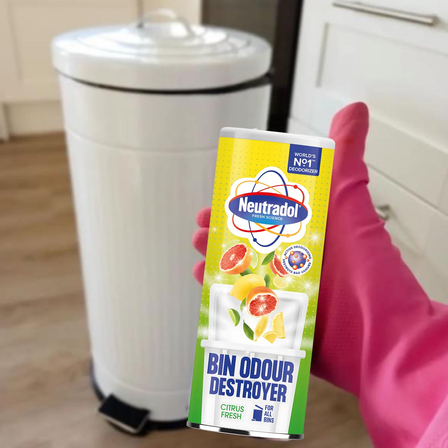 Sprinkle Neutradol Dustbin Odour Destroyer directly into the bin or waste container.