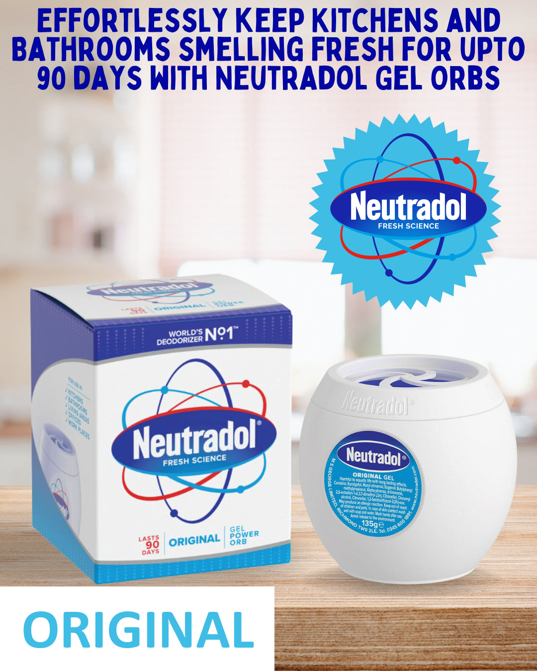 Neutradol Gel Power Orb Odour Destroyer Air Freshener Original 135G